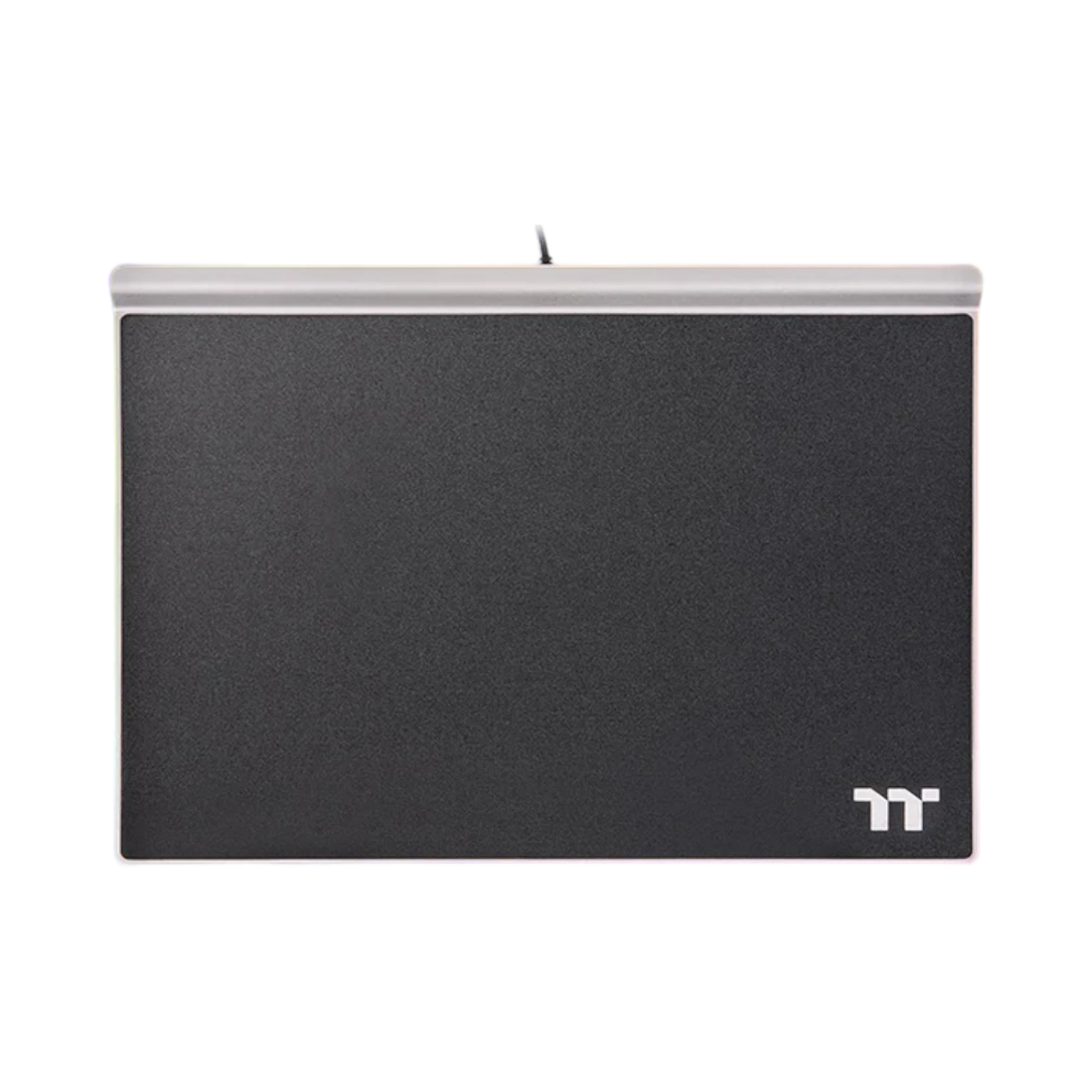 The mouse pad connects via a USB cable, which supplies power for the RGB lighting and allows control through Thermaltake’s iTAKE software. It also supports synchronization with Razer Chroma-enabled devices, making it a seamless addition to gaming setups that use multiple RGB peripherals. This compatibility ensures your lighting effects stay coordinated across your desktop environment.