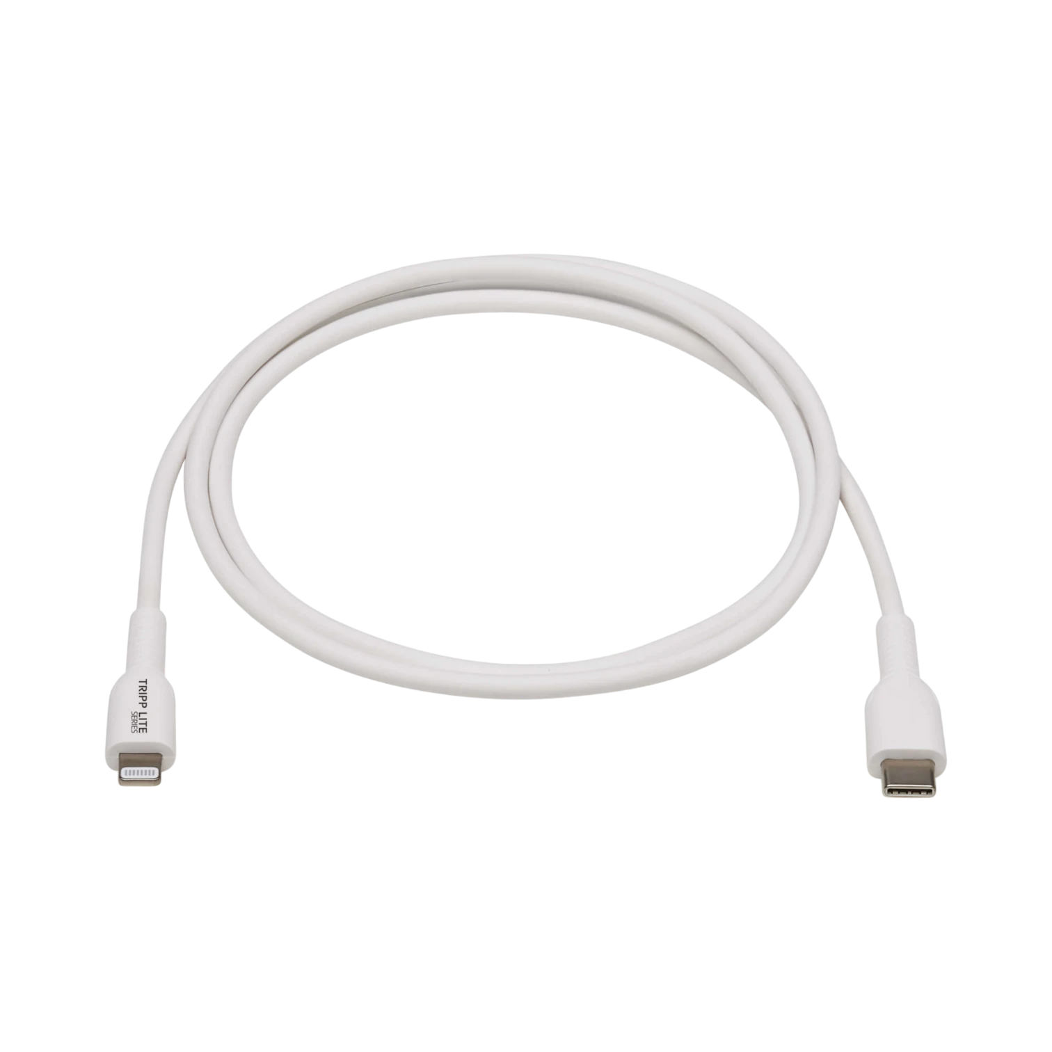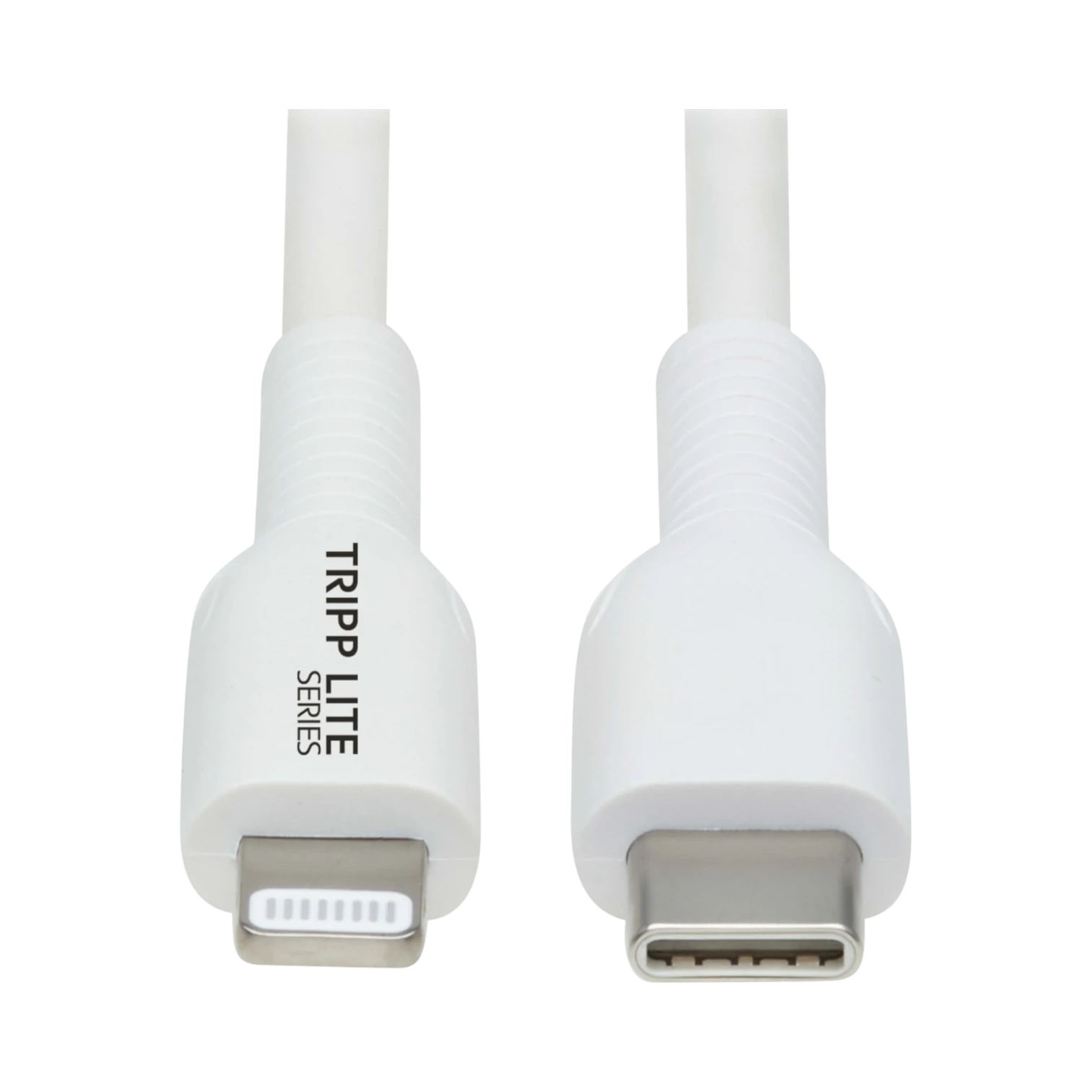 The Tripp Lite M102-01M-WH is a USB-C to Lightning sync and charge cable designed to keep your iPhone, iPad, or iPod powered and connected with ease. Measuring one meter in length, it offers convenient reach from wall chargers or laptops to nearby surfaces, making it practical for use at home, in the office, or while traveling. This cable supports USB 2.0 data transfer speeds up to 480 Mbps, ensuring quick syncing of photos, music, and documents.