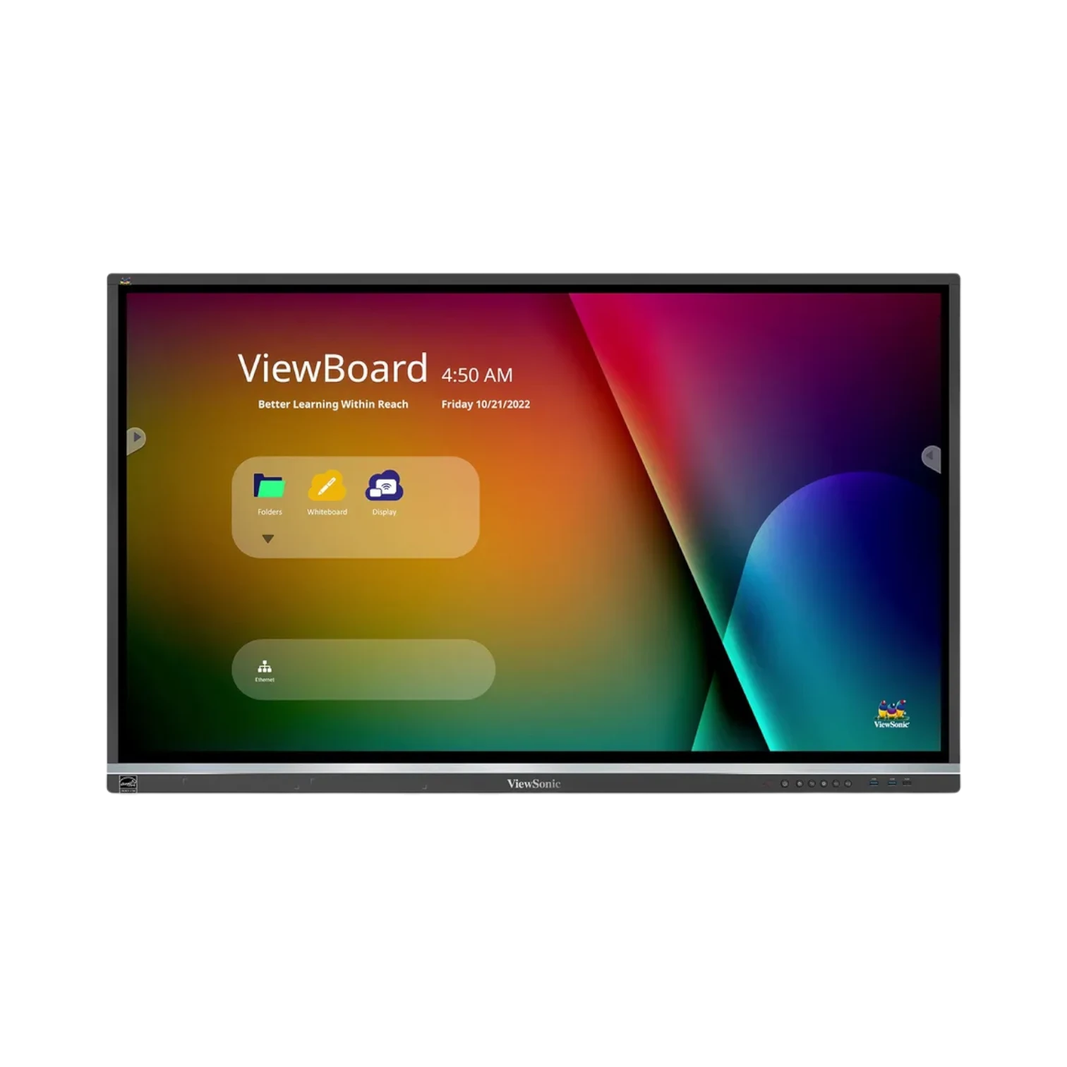 The ViewSonic IFP5550 is a 55 inch interactive display designed to enhance collaboration in classrooms, conference rooms, and training environments. It delivers ultra-high definition 4K resolution (3840 × 2160) for sharp and detailed visuals, making text, diagrams, and videos easy to see from anywhere in the room. The infrared touch technology supports up to 40 simultaneous touch points, allowing multiple users to interact with the screen at once using two included styluses that offer different line weights for natural writing and drawing experiences.