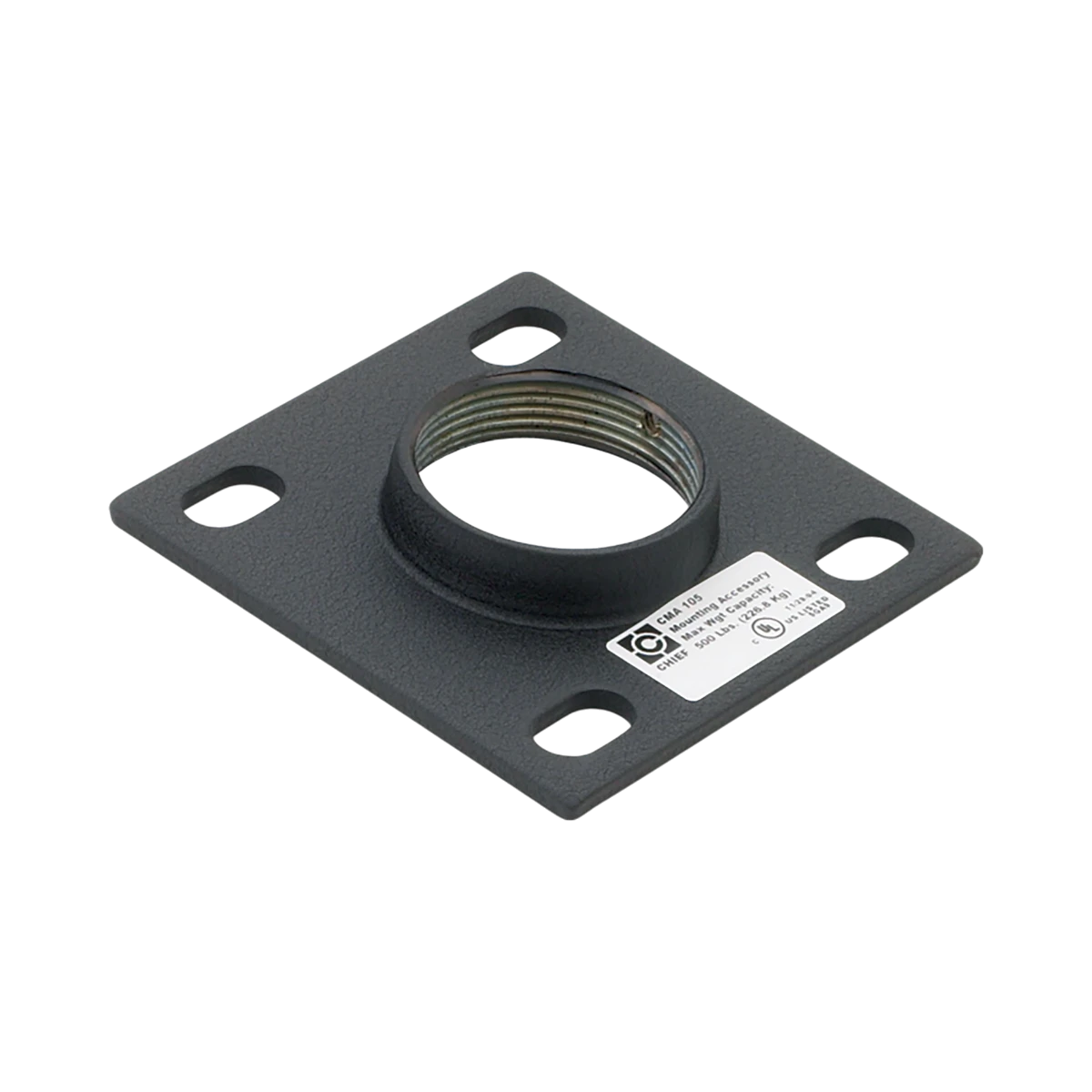 The Chief CMA105 is a 4-inch ceiling plate with a 1.5-inch NPT opening designed to provide a secure and reliable mounting point for overhead equipment. It supports loads up to 500 pounds, making it suitable for projectors, large displays, security cameras, and other devices requiring a sturdy ceiling mount. Its compact size and low-profile design help it fit neatly into tight spaces such as classrooms, conference rooms, retail environments, and home theaters without drawing attention away from the mounted equipment.