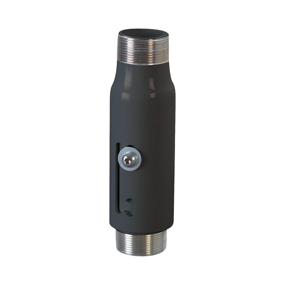 The CMS006009 extension column threads directly into any accessory using a 1.5-inch NPT pipe, making it highly versatile for various mounting setups. This includes ceiling plates, projector mounts, display adapters, and other Chief accessories, ensuring seamless integration into existing systems without the need for additional adapters or modifications.