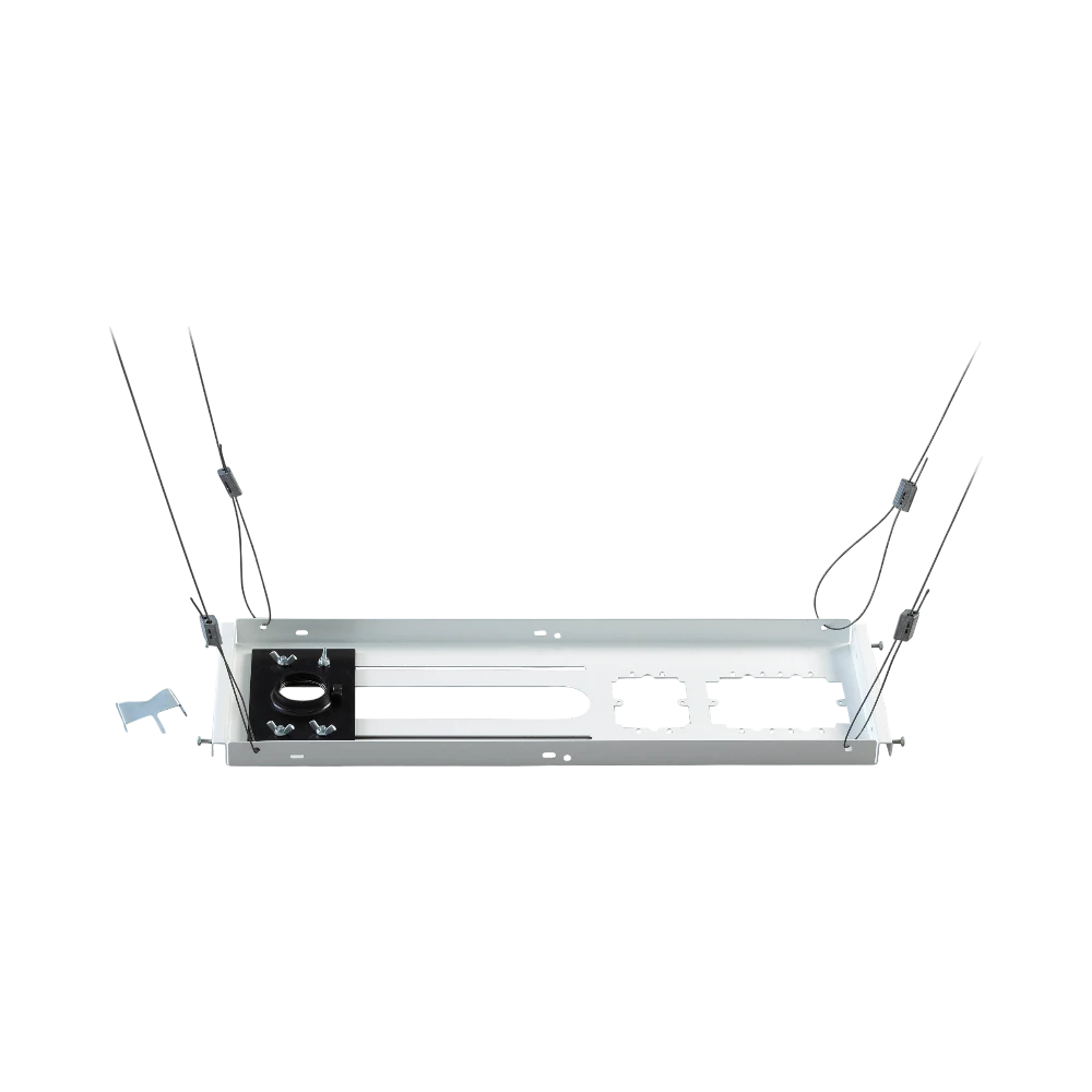 Its adjustable mounting slot allows for flexible positioning, while tamper-resistant hardware enhances security. Compatible with 1.5" NPT columns and fitting standard 24" ceiling tile grids, this kit integrates well into most commercial and residential suspended ceiling systems. It is well suited for environments where fast, reliable, and secure ceiling installations are needed, such as offices, retail spaces, and home theaters.