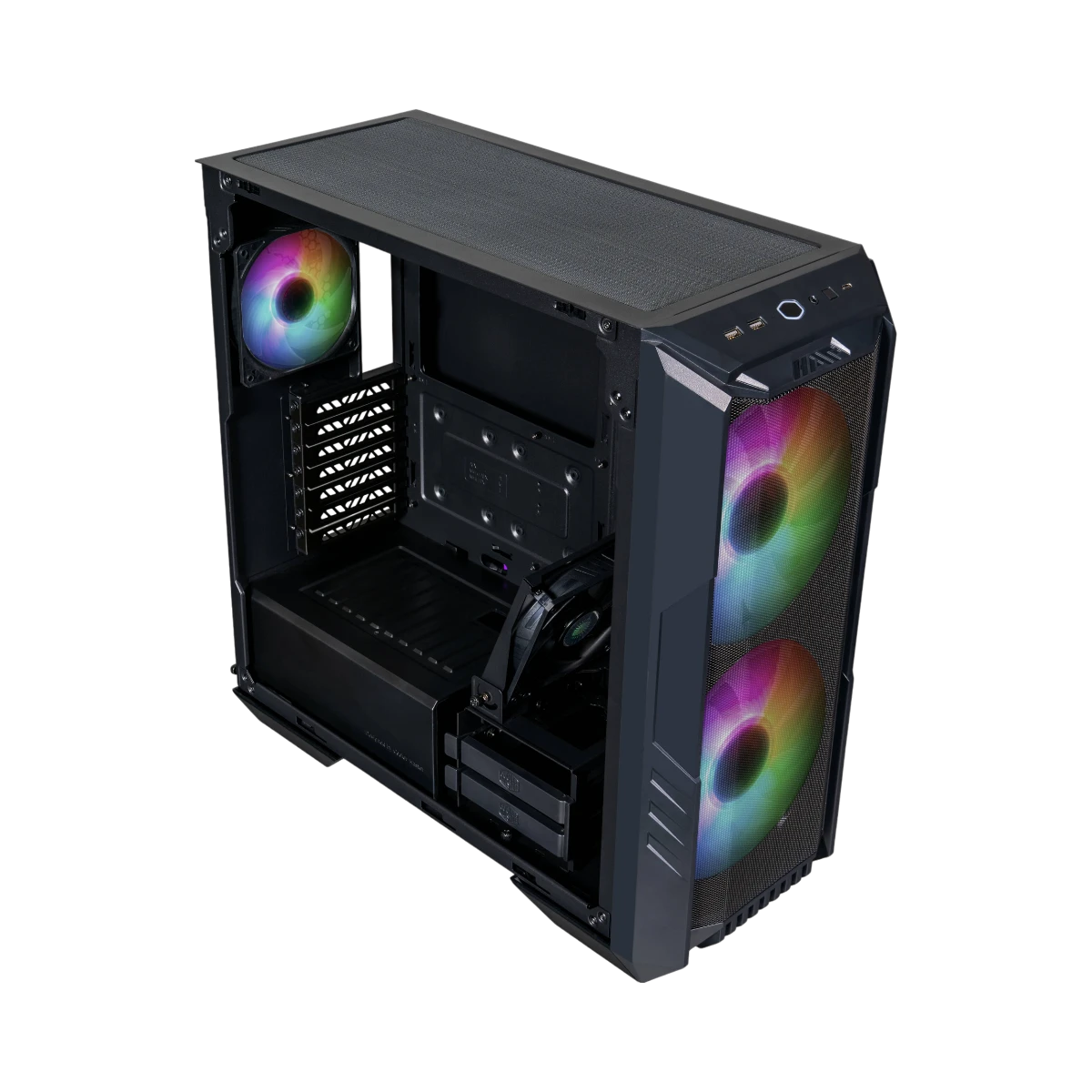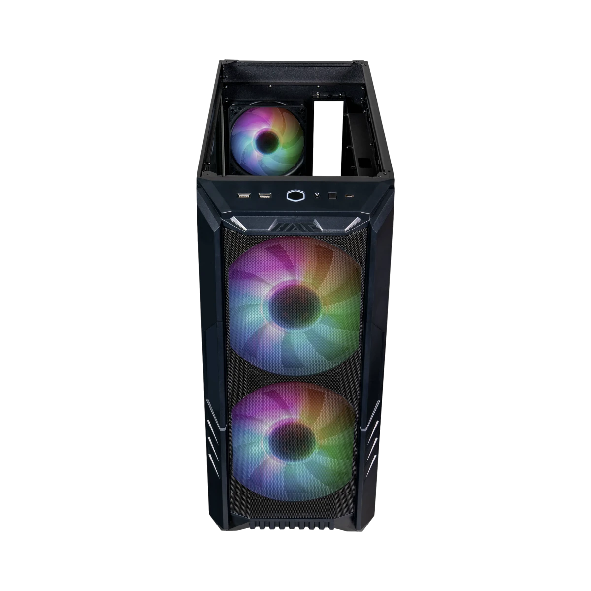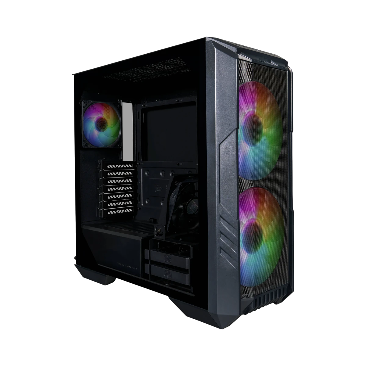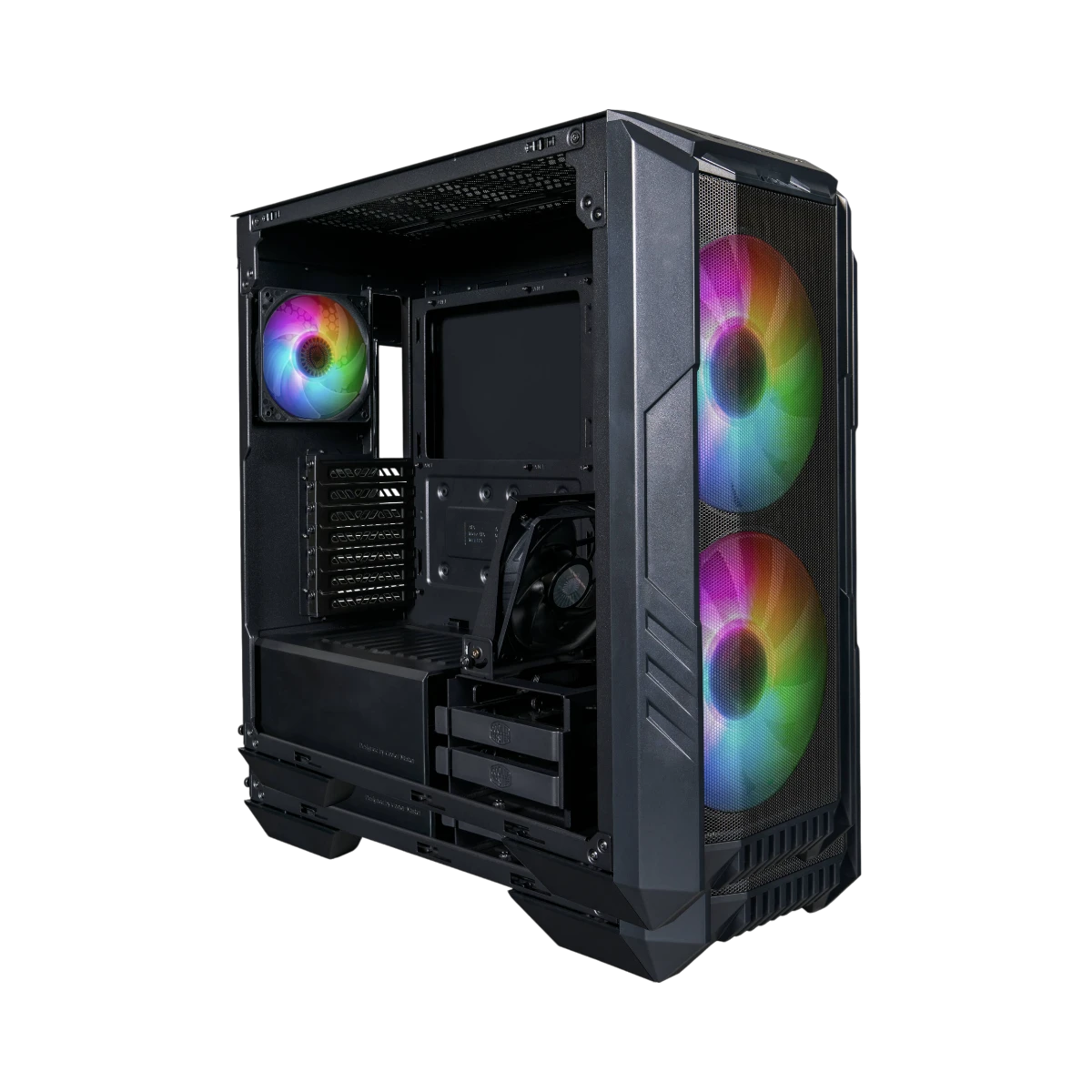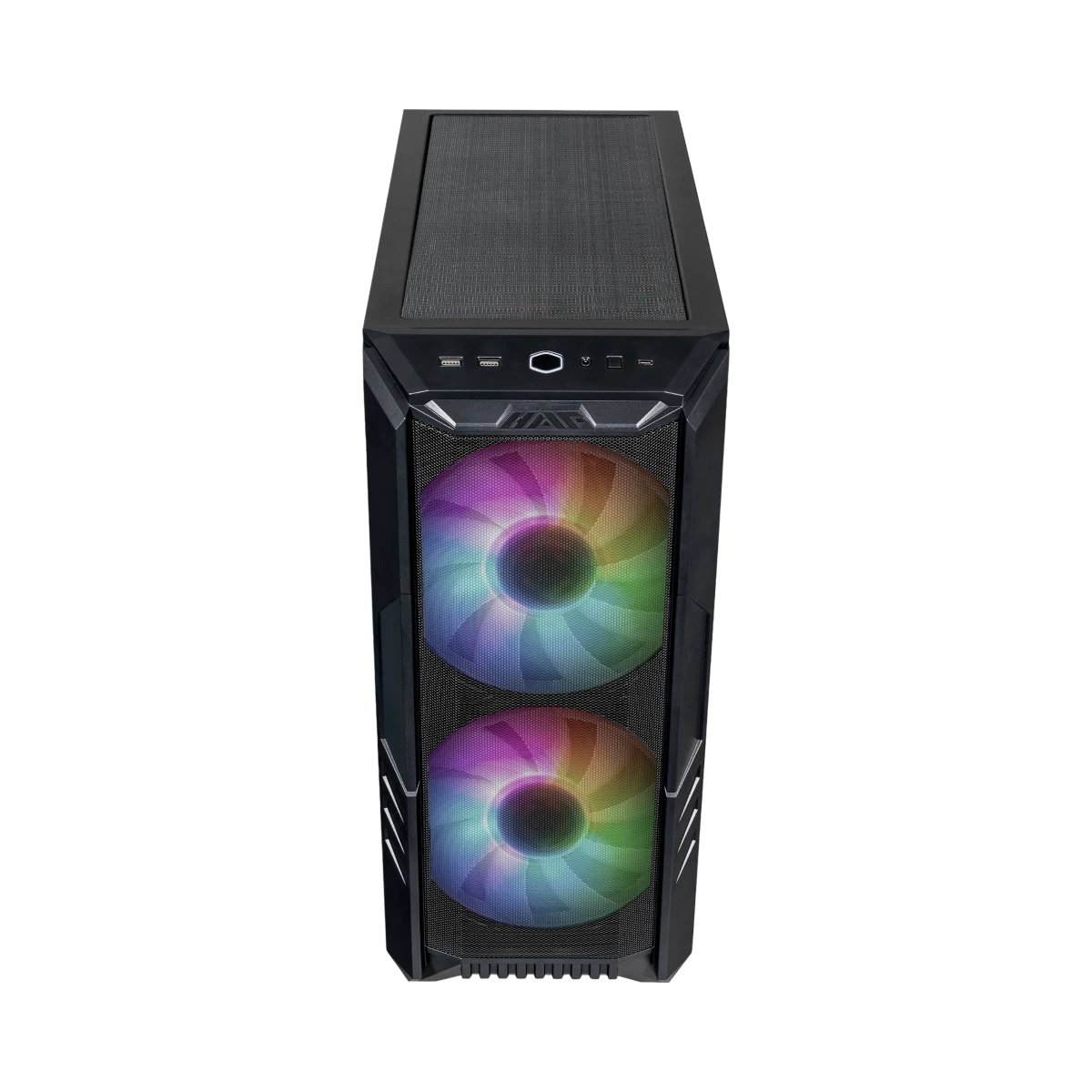 The Cooler Master HAF 500 Mid-Tower Gaming Case (H500-KGNN-S00) is a high-performance PC chassis designed to maximize airflow and cooling for gaming and demanding computing tasks. Featuring two large 200mm ARGB fans and a mesh front panel, it ensures a steady intake of fresh air to keep your components cool. This case supports a variety of motherboard sizes including ATX, E-ATX, and SSI CEB, and accommodates radiators up to 360mm, making it suitable for both air and liquid cooling setups.