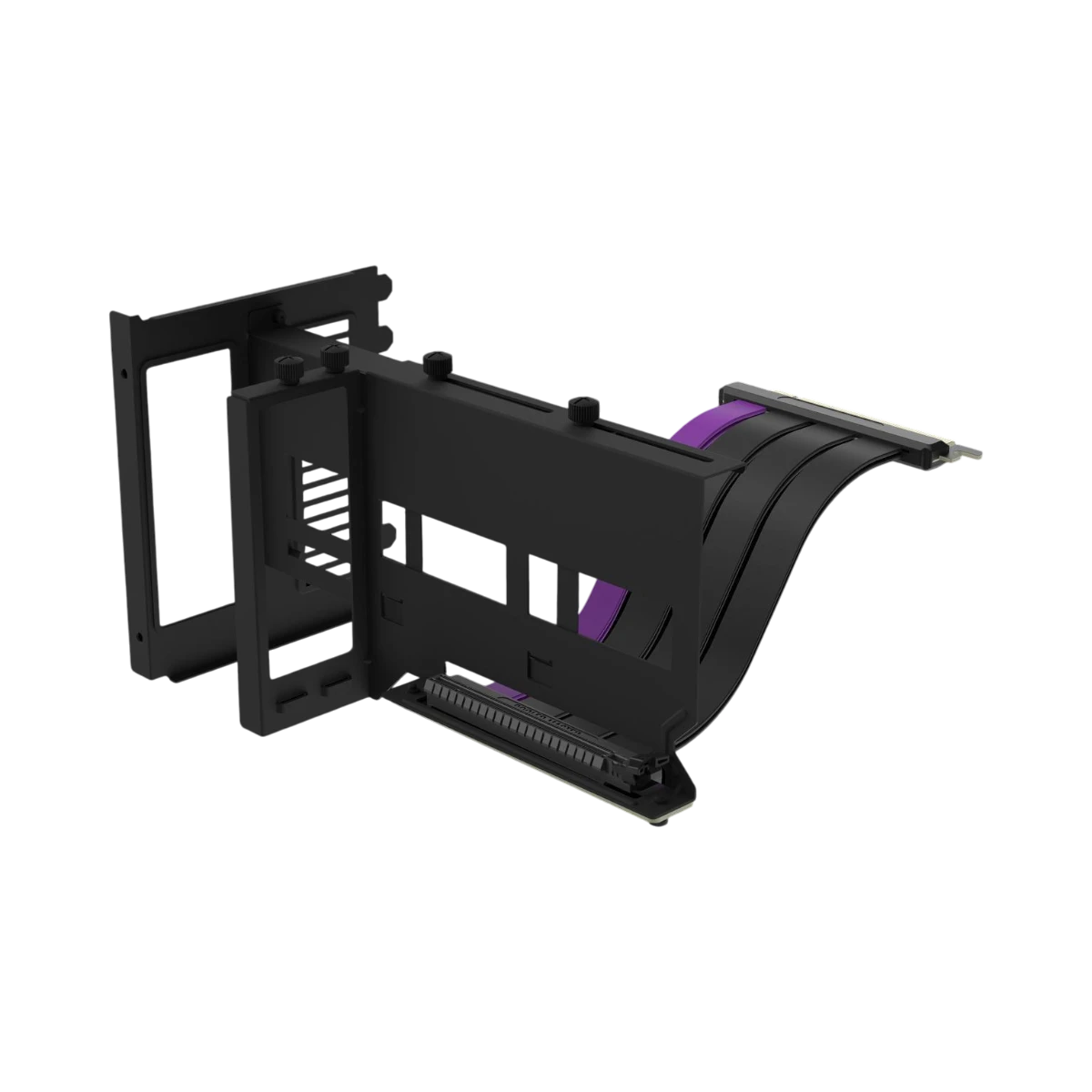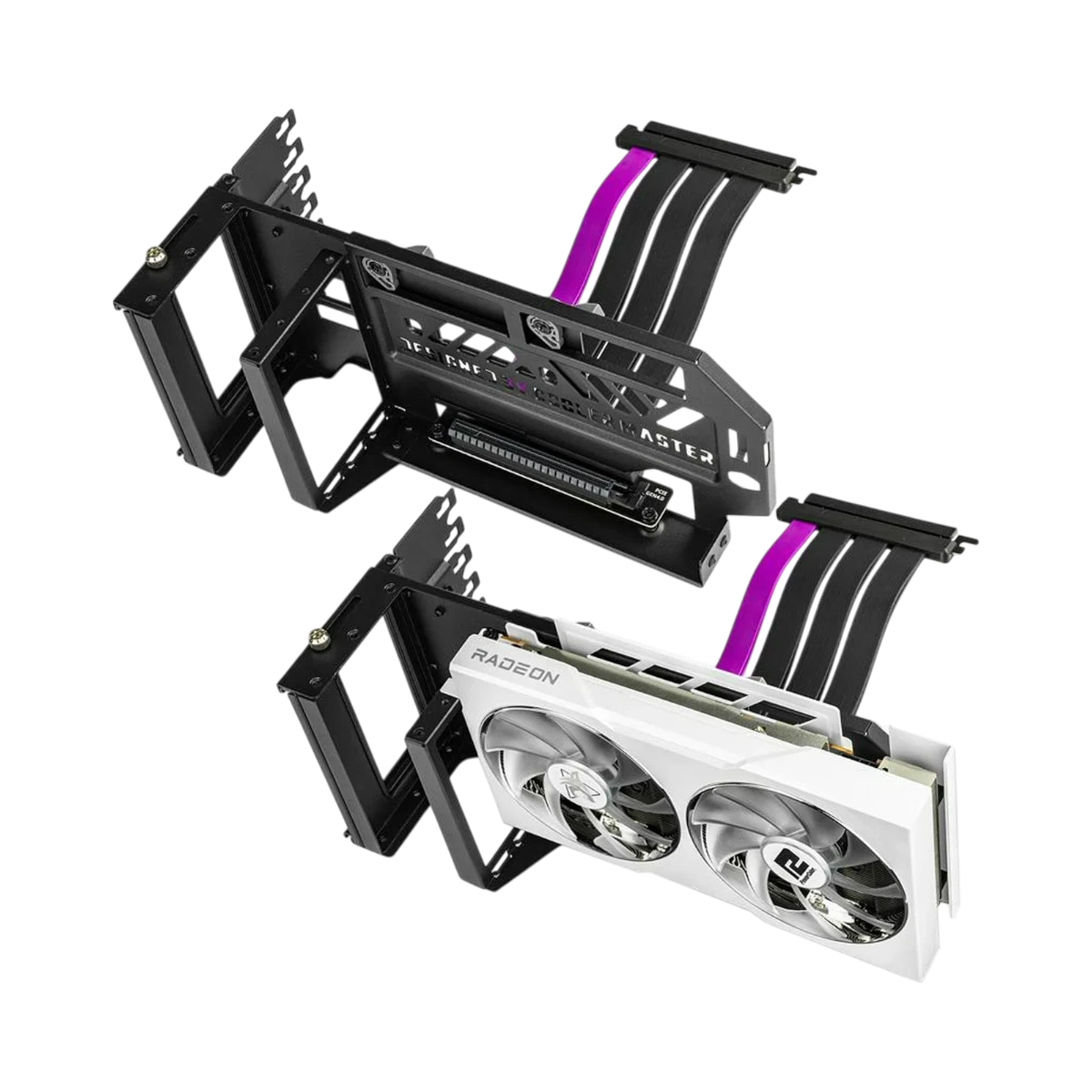 The Cooler Master MCA-U000R-KFVK01 is a vertical GPU holder kit designed to prominently display your graphics card while keeping your PC build clean and organized. It fits standard ATX and E-ATX cases with at least seven PCI slots, offering flexibility for a wide range of setups. The kit includes a premium PCIe 4.0 riser cable that ensures fast and reliable data transfer, making it suitable for high-performance GPUs.