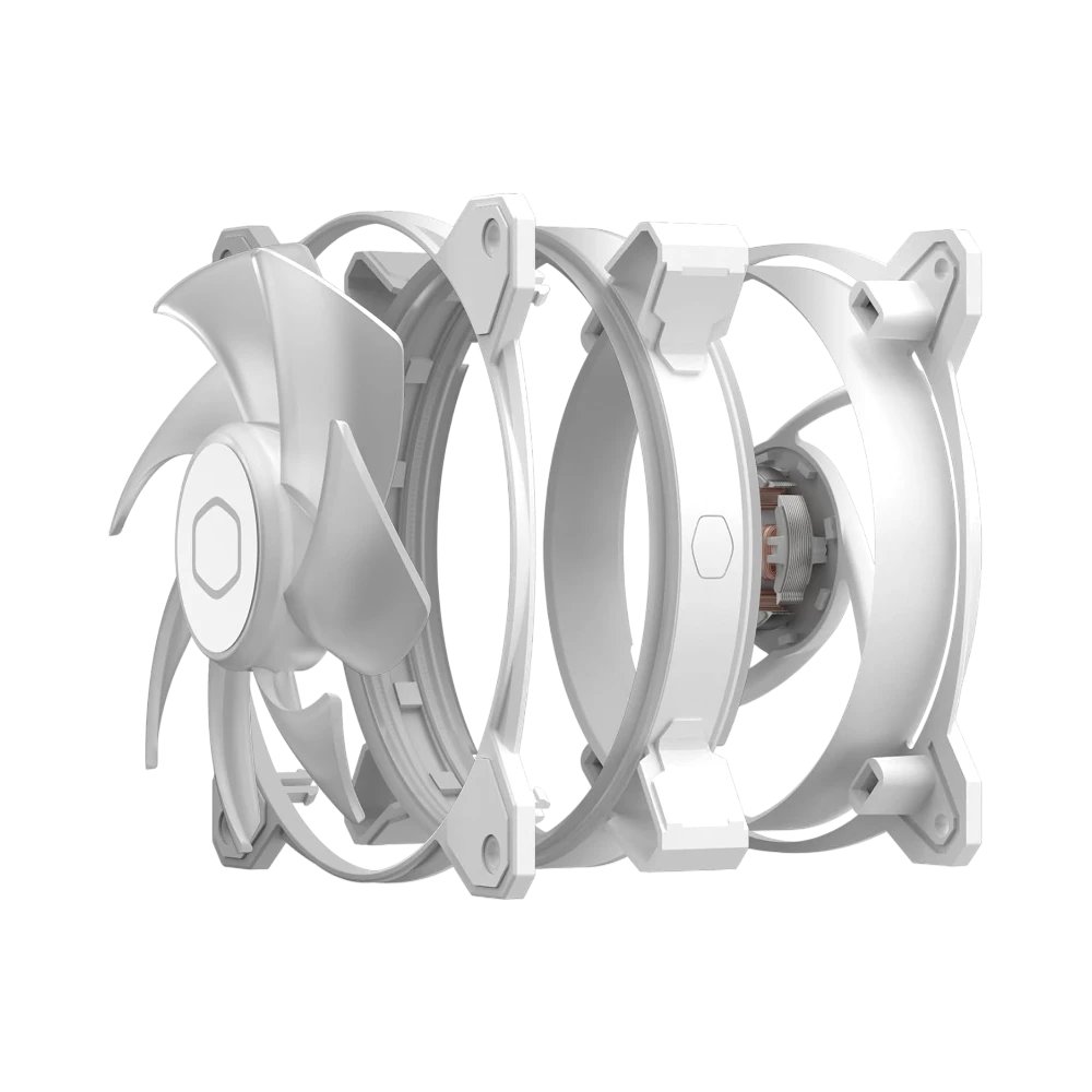 The Cooler Master MFL-B2DW-21NP2-R2 is a set of three 120 mm case fans designed to enhance airflow and cooling performance in gaming and high-performance PC builds. Each fan operates at speeds up to 2050 rpm with PWM control, delivering up to 51.88 CFM of airflow while maintaining a low noise level of 27 dBA. The fans feature dual-loop ARGB lighting for customizable illumination, making them a practical choice for users who want both effective cooling and visual appeal.