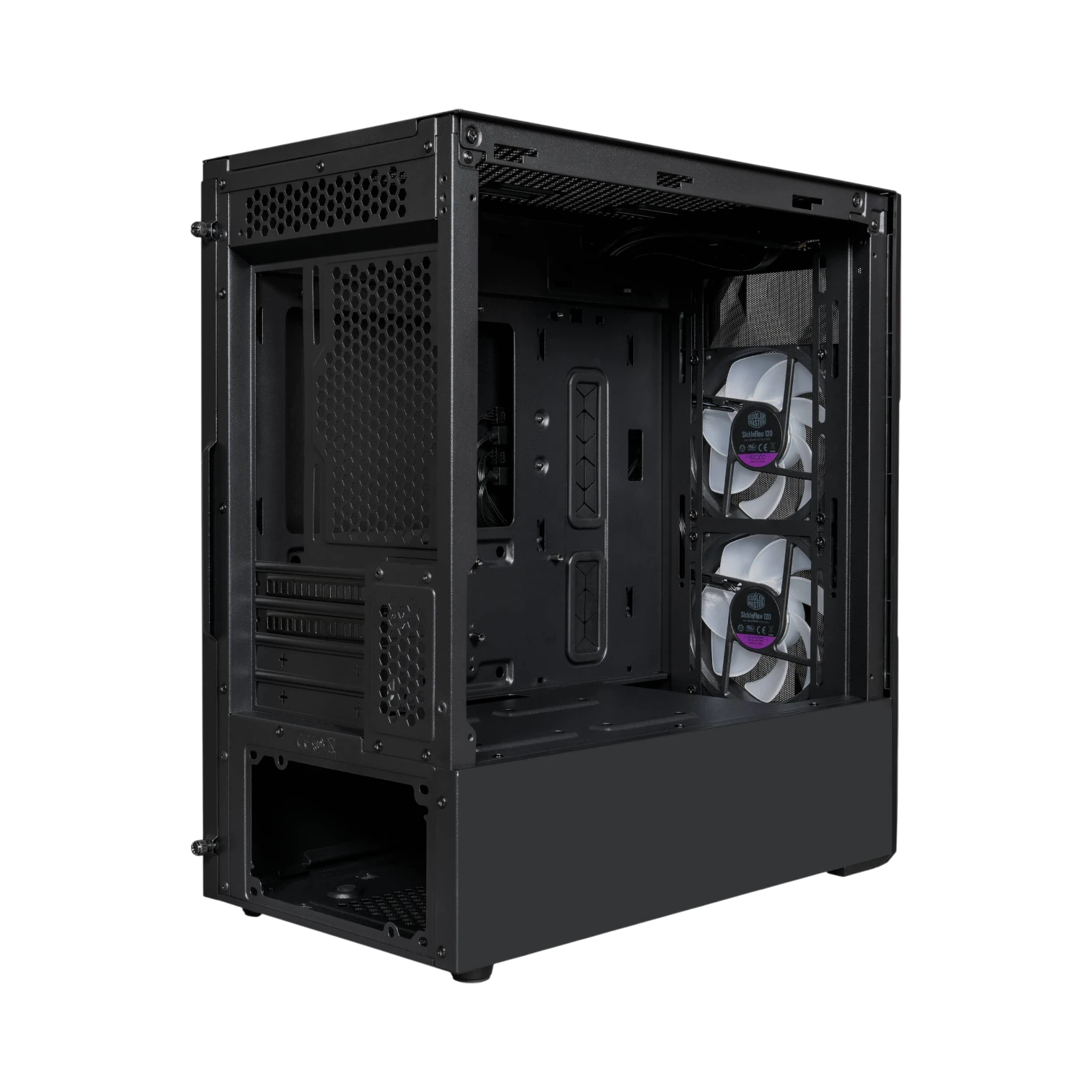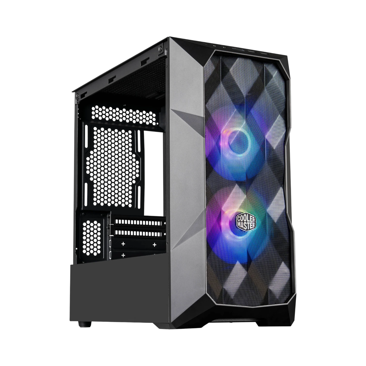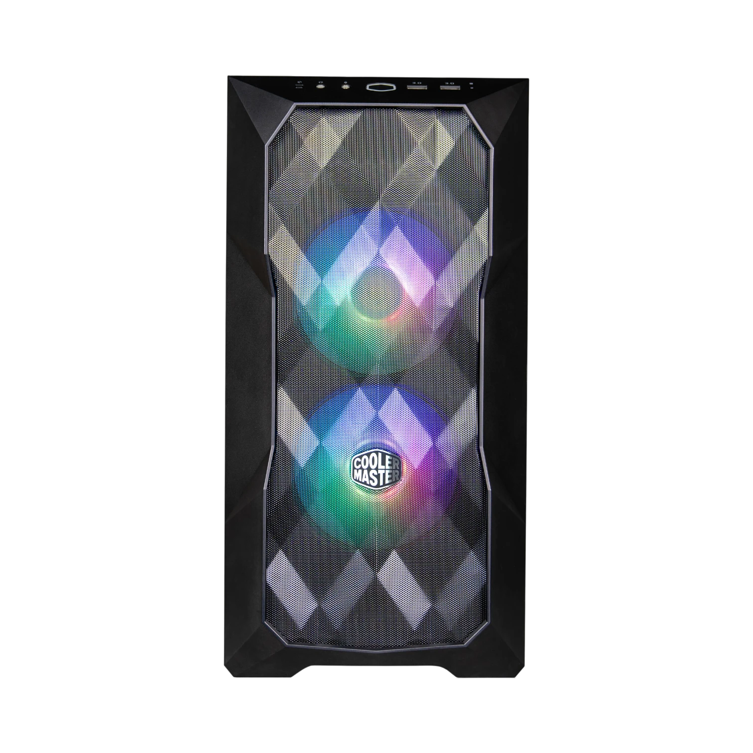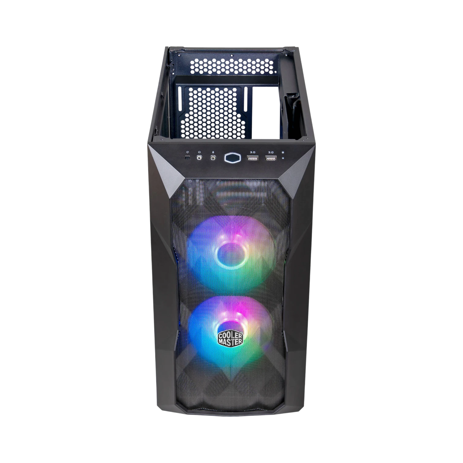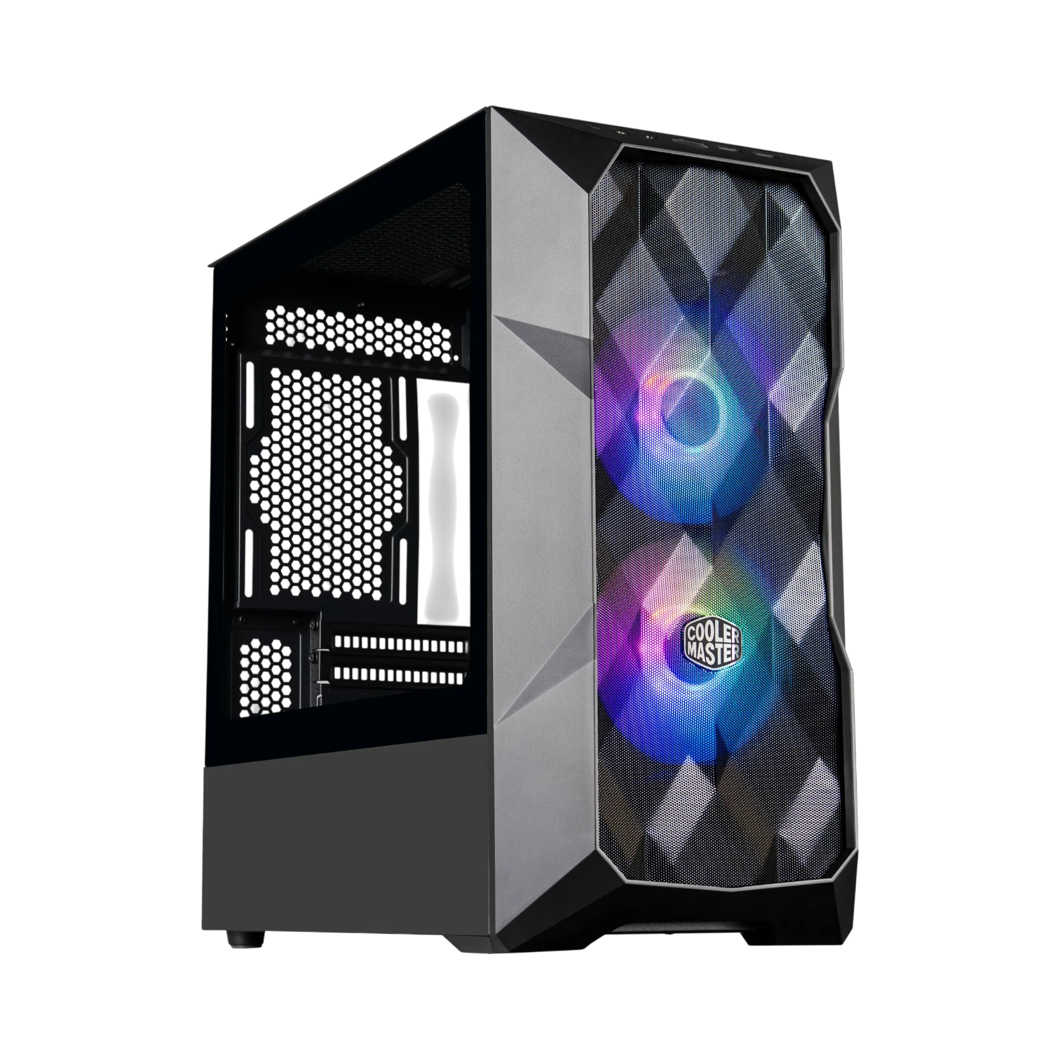 The Cooler Master TD300-KGNN-S00 is a mid-tower PC case designed for builders who want a compact setup without sacrificing airflow, cooling options, or hardware space. It supports Micro-ATX and Mini-ITX motherboards and accommodates graphics cards up to 13.5 inches long and CPU coolers up to 6.5 inches tall. The case features a mesh front panel with a dust filter and comes with two preinstalled 120 mm ARGB fans that provide immediate airflow and customizable lighting.