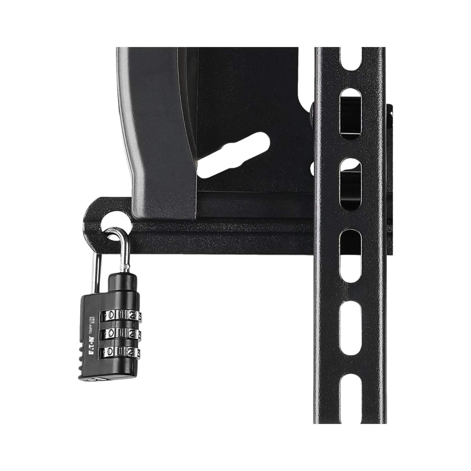 The Tripp Lite DWTSC3255MUL is a heavy-duty tilt security wall mount designed for flat or curved TVs and monitors ranging from 32 to 55 inches. It supports displays weighing up to 99 pounds and has been UL certified after testing at 150 pounds, ensuring reliable strength and safety in demanding environments. This mount allows you to tilt the screen between -15° and +10° to optimize viewing angles and reduce glare, making it suitable for a variety of settings including classrooms, conference rooms, hotels, and retail spaces.
