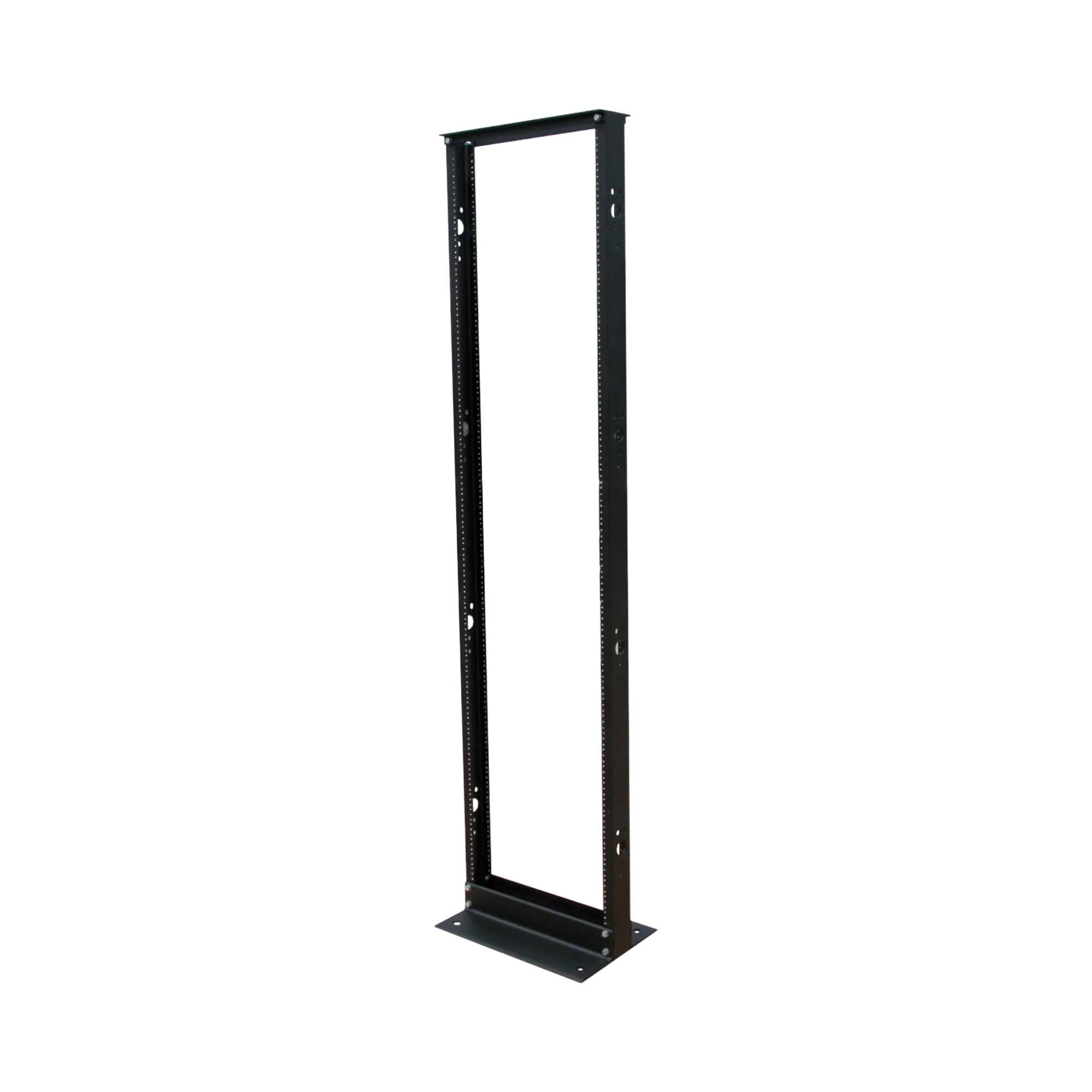 The Tripp Lite SR2POST is a 45U open frame rack designed to organize and secure standard 19-inch network and server equipment while saving space. It supports up to 800 pounds (362.9 kgs) of mounted gear, making it a strong choice for network closets, wiring rooms, classrooms, and test labs where accessibility and visibility are important. Its aluminum frame with a black powder coat finish ensures durability and resistance to scratches, while the open design allows easy access to switches, patch panels, UPS systems, and test equipment.