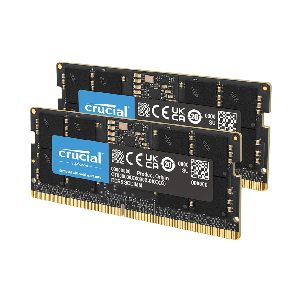 The Crucial CT2K16G48C40S5 is a 32GB DDR5-4800 SODIMM memory kit designed to enhance the performance of laptops and small form factor PCs. It includes two 16GB modules that deliver a combined capacity ideal for multitasking, running demanding applications, and managing large files efficiently. Operating at 4,800 MT/s with a CAS latency of 40, this memory kit offers a balanced combination of speed and responsiveness for both everyday use and more intensive workloads.