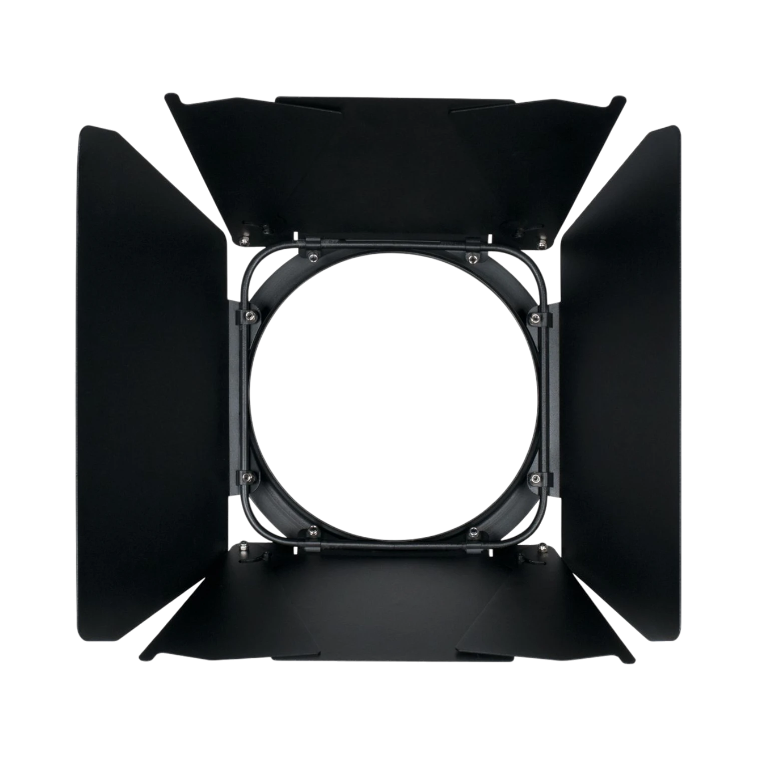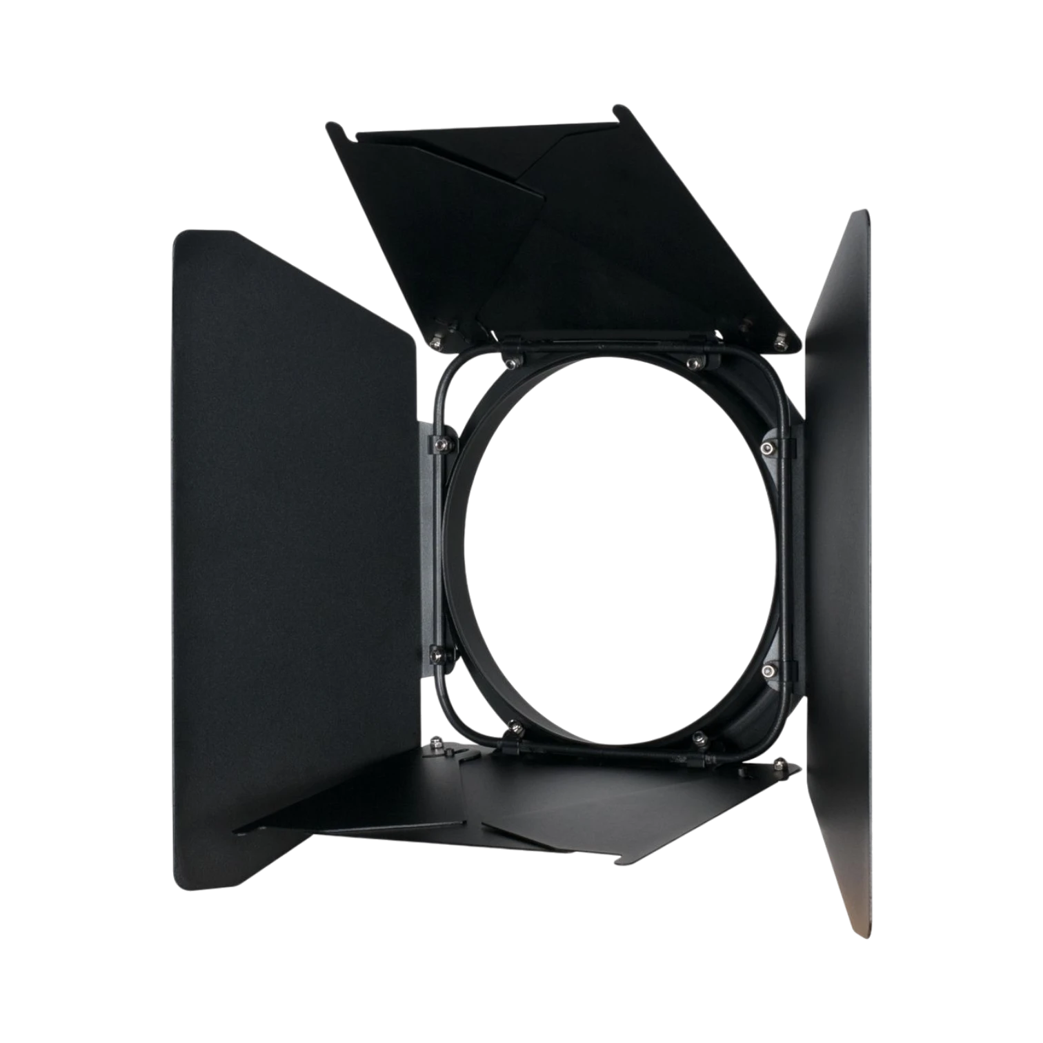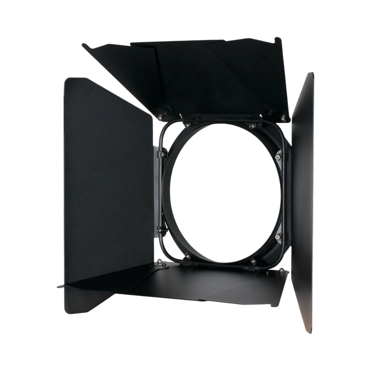 Installation is quick and straightforward, as the barn door slips directly into the fixture’s gel frame holder clip. Once mounted, it remains securely locked in place until manually adjusted or removed. The hand-operated leaves allow for immediate beam shaping without the need for tools or electronic adjustments, saving time during setup and on-site changes.