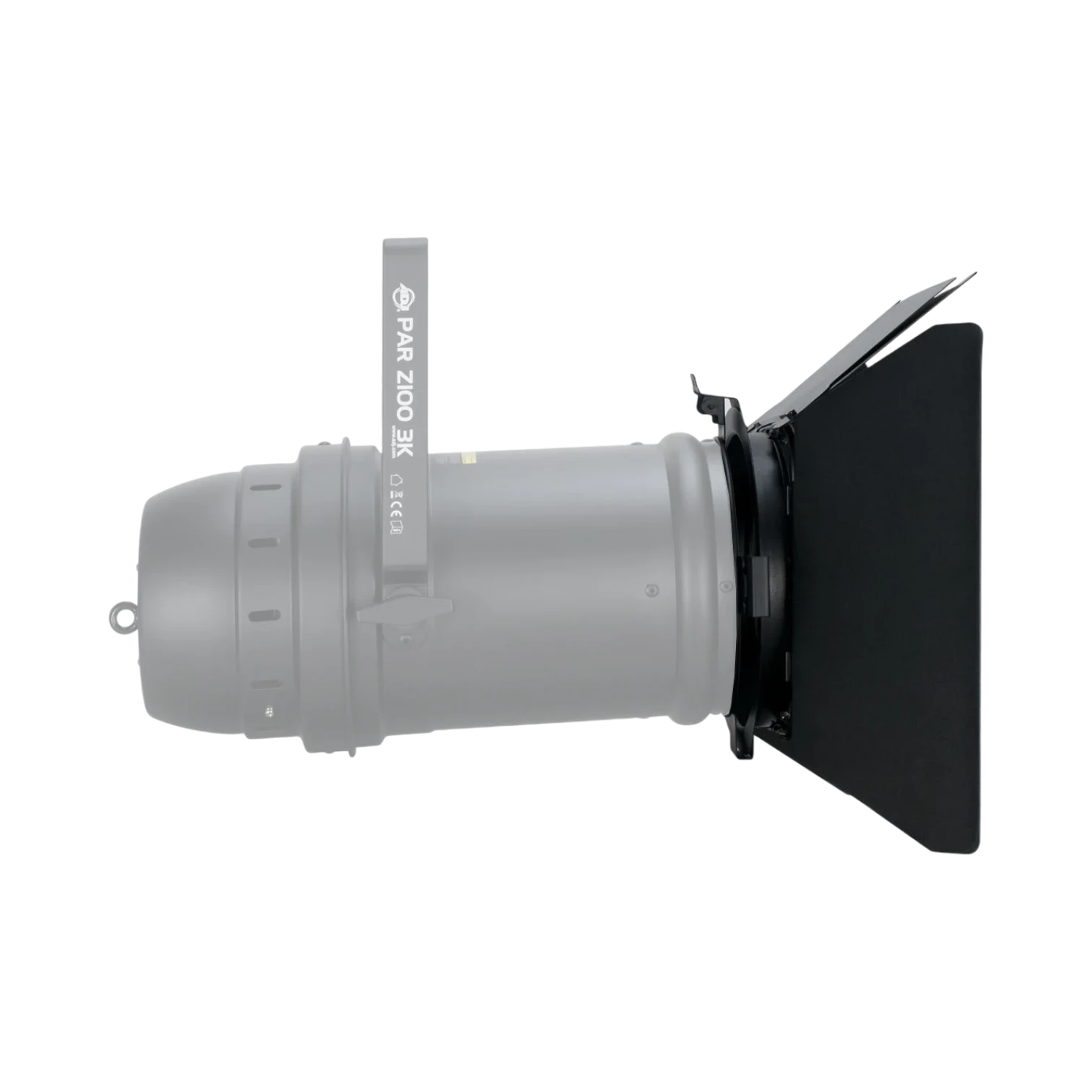 - Four hand-adjustable leaves allow for precise shaping of the light beam to feather edges or cut spill