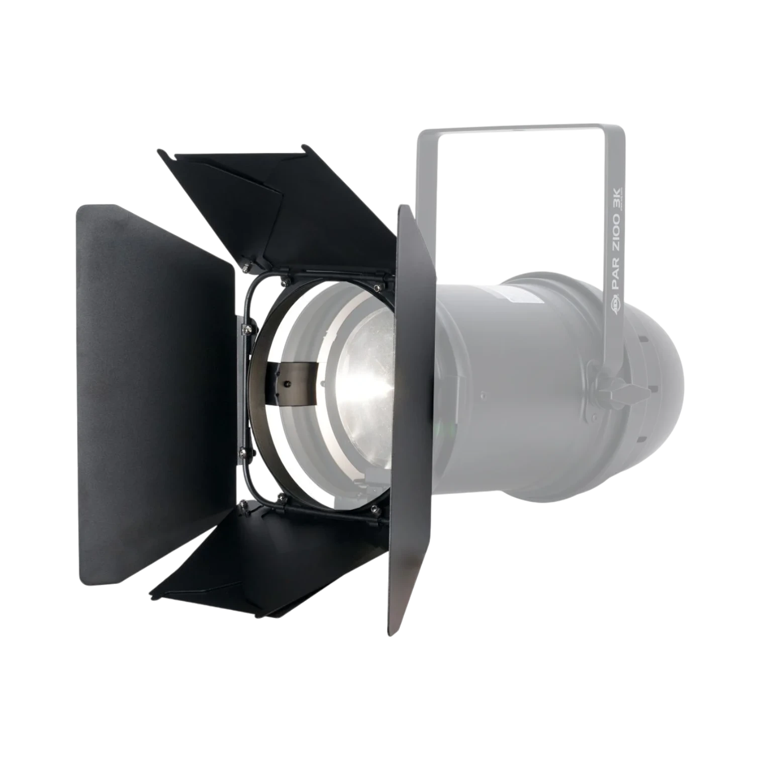 The ADJ PAR645 is a barn door attachment designed to shape and control the light output of PAR 64 style fixtures. It fits both ADJ PAR Z100 Series LED Pars and traditional PAR 64 halogen cans, providing lighting professionals with a reliable way to refine, narrow, or block parts of the beam without altering the fixture’s electronics. Its durable black metal construction and four adjustable leaves make it a practical tool for precise beam control in various lighting setups.