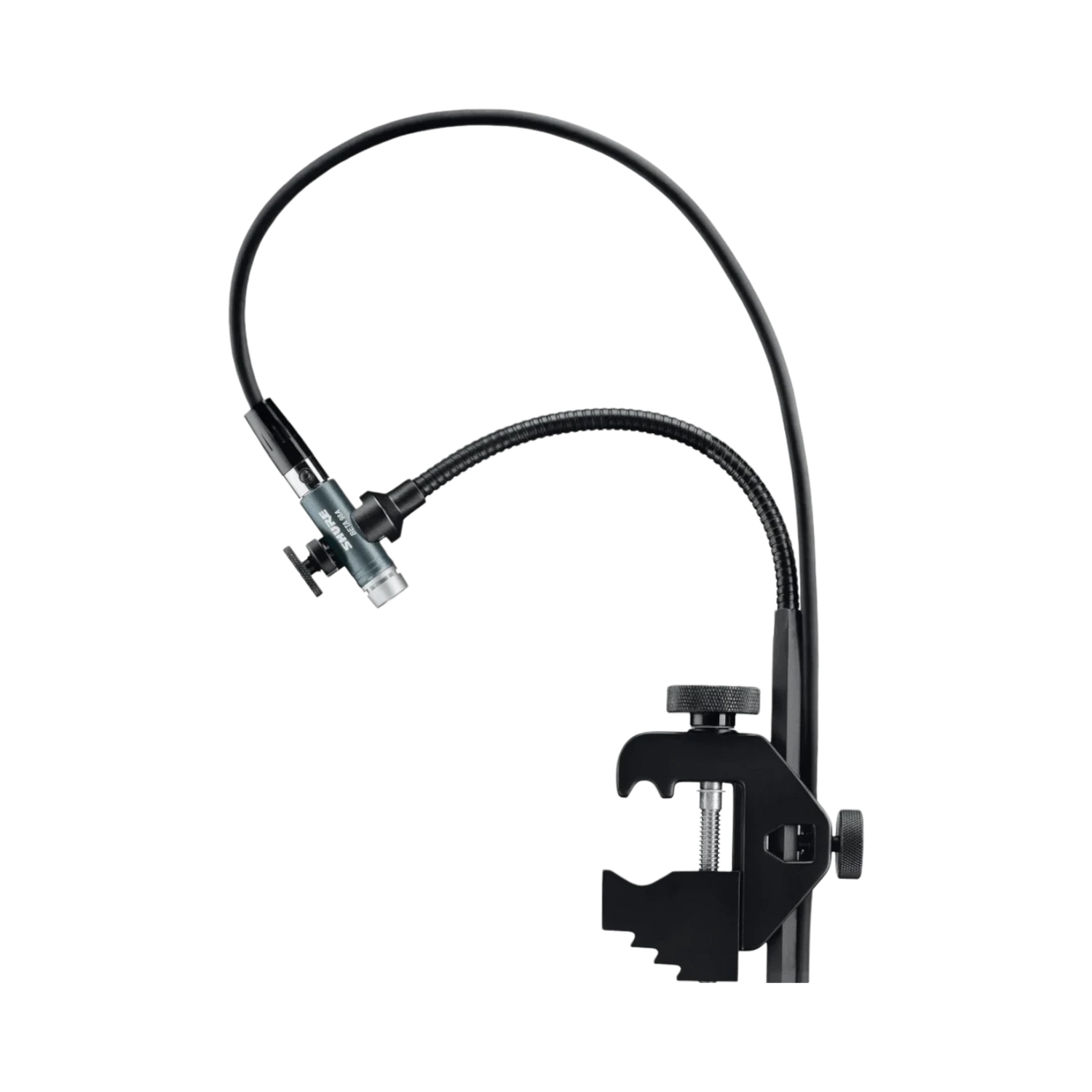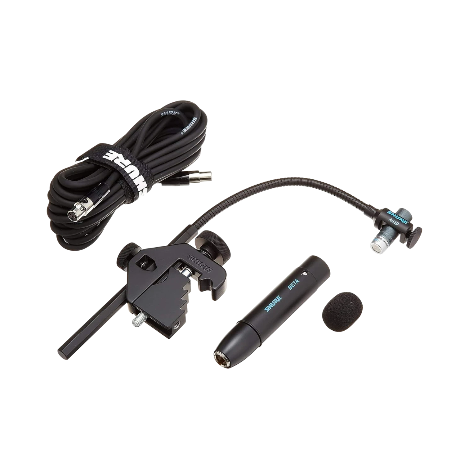The Shure BETA 98AD/C is a compact condenser microphone designed specifically for drums and percussion. It features a tight cardioid pickup pattern that captures clear and natural sound from 20 Hz to 20 kHz, making it ideal for detailed drum and percussion recording or live performance. With the ability to handle sound pressure levels up to 150.5 dB SPL, it delivers clean audio even during loud hits and rimshots, while its included A98D drum mount allows precise placement without bulky stands.