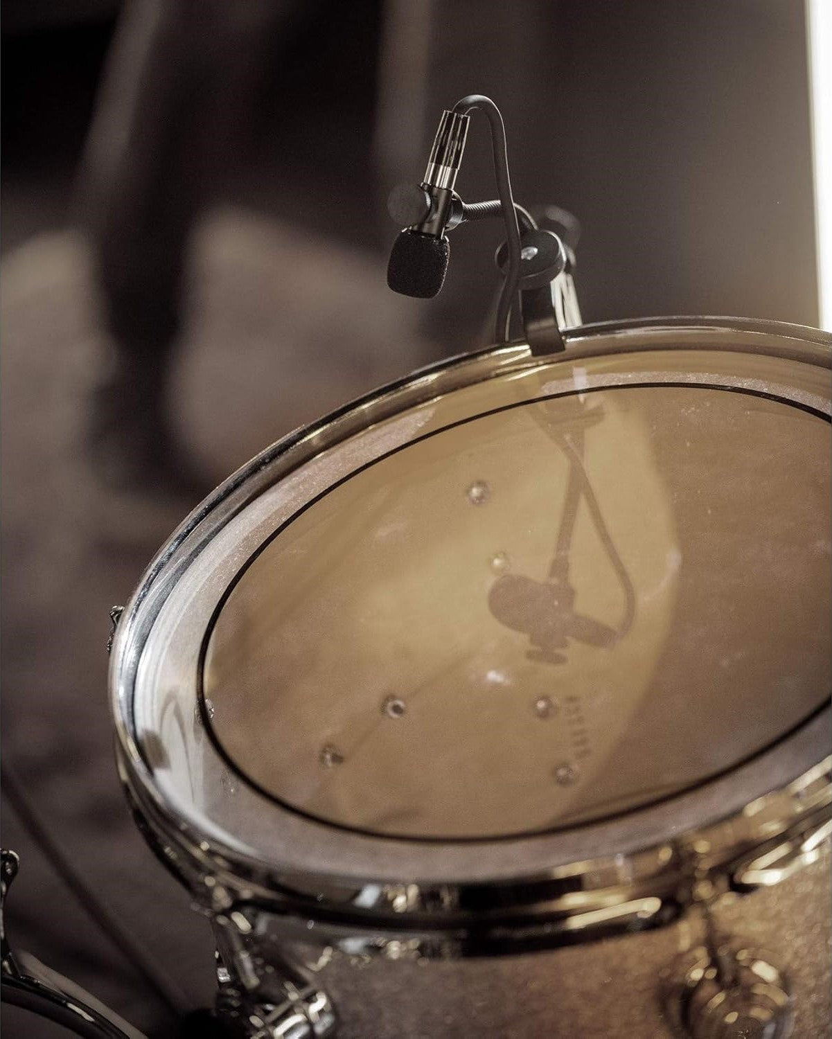 - Compact condenser design that fits easily into crowded drum kits and percussion setups