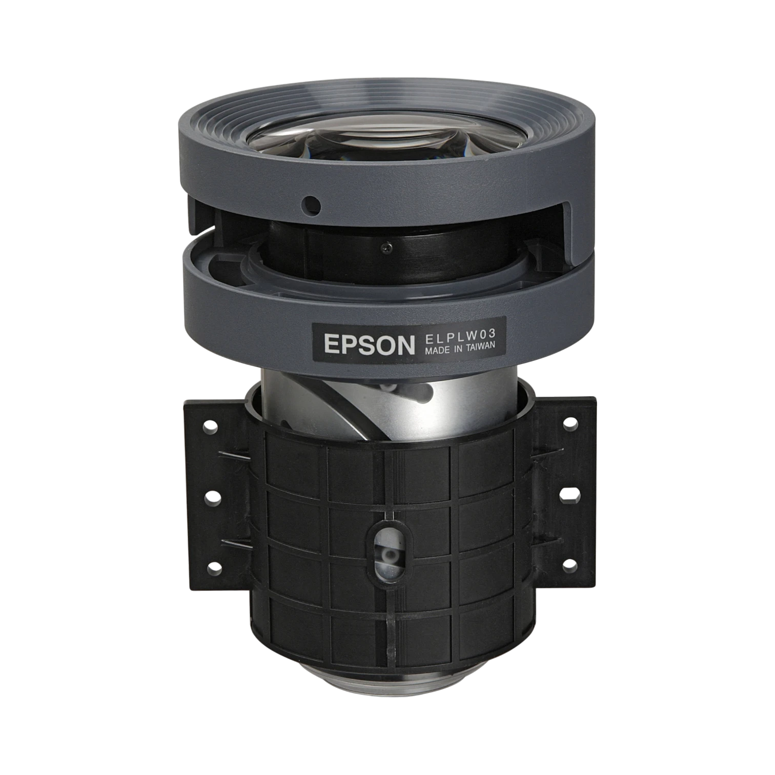 The Epson V12H004W03 is a wide zoom projection lens designed to produce large, sharp images even when the projector is placed close to the screen. It supports a throw-to-screen width ratio ranging from 1.32:1 to 1.8:1, making it an excellent choice for environments where space is limited or rear projection is preferred. This lens is compatible with Epson PowerLite 7800p, PowerLite 7850p, and EMP 7900 projectors, offering flexibility and ease of installation for professional AV setups.