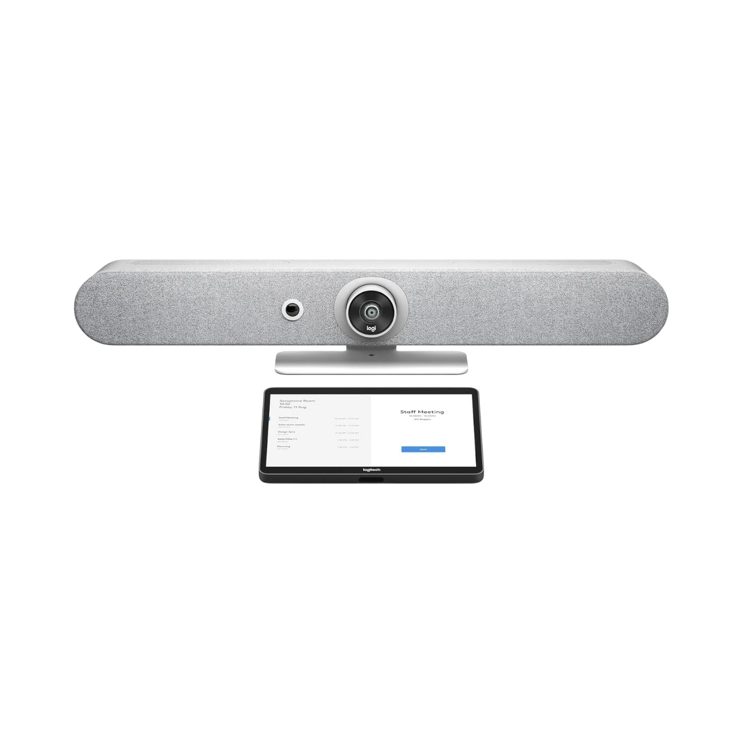 The Logitech 960-001348 is an all-in-one video bar designed to transform small and medium meeting rooms into professional collaboration spaces. It features a 4K camera with motorized pan and tilt that automatically frames participants using built-in AI, ensuring everyone stays in view without manual adjustments. The device also includes six beamforming microphones that capture voices from up to 23 feet away and a patented speaker system that delivers clear sound while minimizing echo and background noise. Installation is flexible, with options to place it on a table stand or mount it on a wall, complemented by thoughtful cable management for a clean setup.