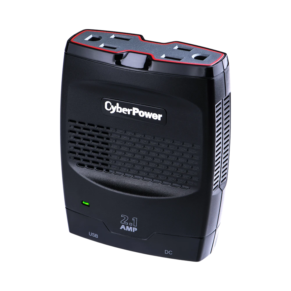 The CyberPower CPS175SURC1 is a mobile power inverter designed to convert 12-volt DC power from a vehicle into 120-volt AC power, providing a convenient way to run or recharge household electronics while on the move. It delivers 140 watts of continuous power with the ability to handle surges up to 175 watts, making it suitable for laptops, tablets, camera chargers, and other small devices. The unit plugs directly into a car, truck, or boat cigarette lighter socket and includes two grounded AC outlets plus a USB port that supplies 2.1 amps for fast mobile device charging.
