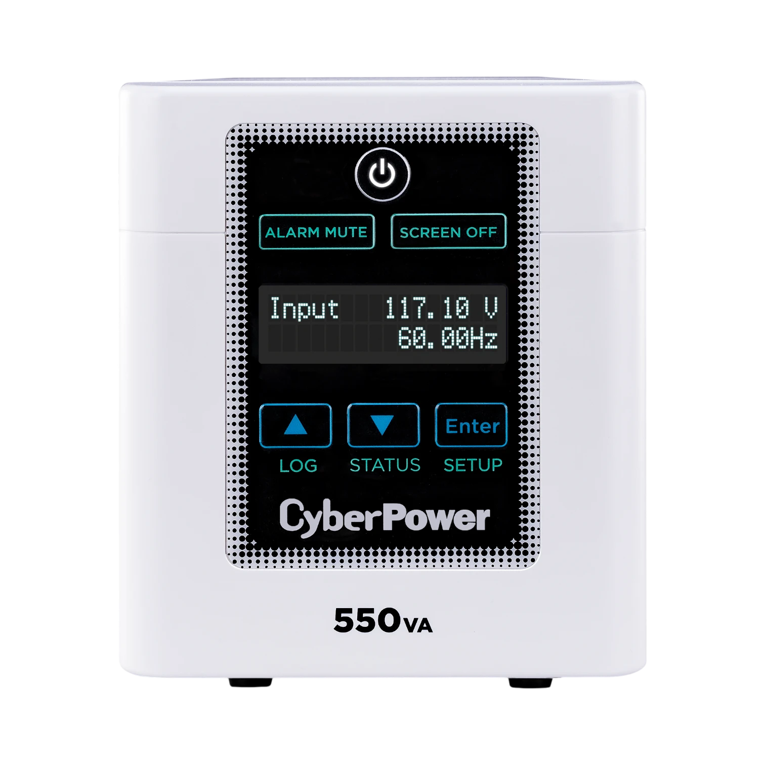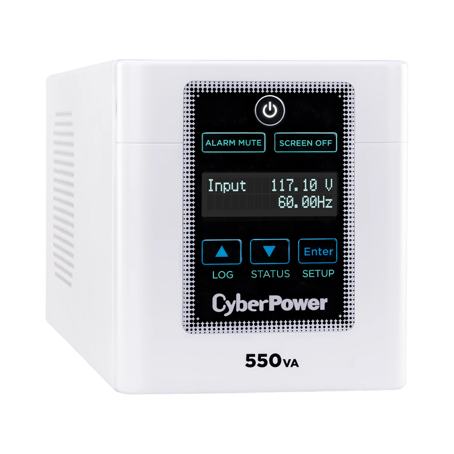 The CyberPower M550L is a medical-grade uninterruptible power supply designed to keep critical healthcare equipment operational during power fluctuations or outages. Delivering 550 volt-amps (440 watts) of backup power, it supports a full load for about eight minutes and a half load for roughly twenty-five minutes, providing essential time for caregivers to complete procedures, save data, or switch to backup generators. Its compact mini tower design with a stable base fits conveniently in patient care areas such as nurses stations, exam rooms, or workstations.