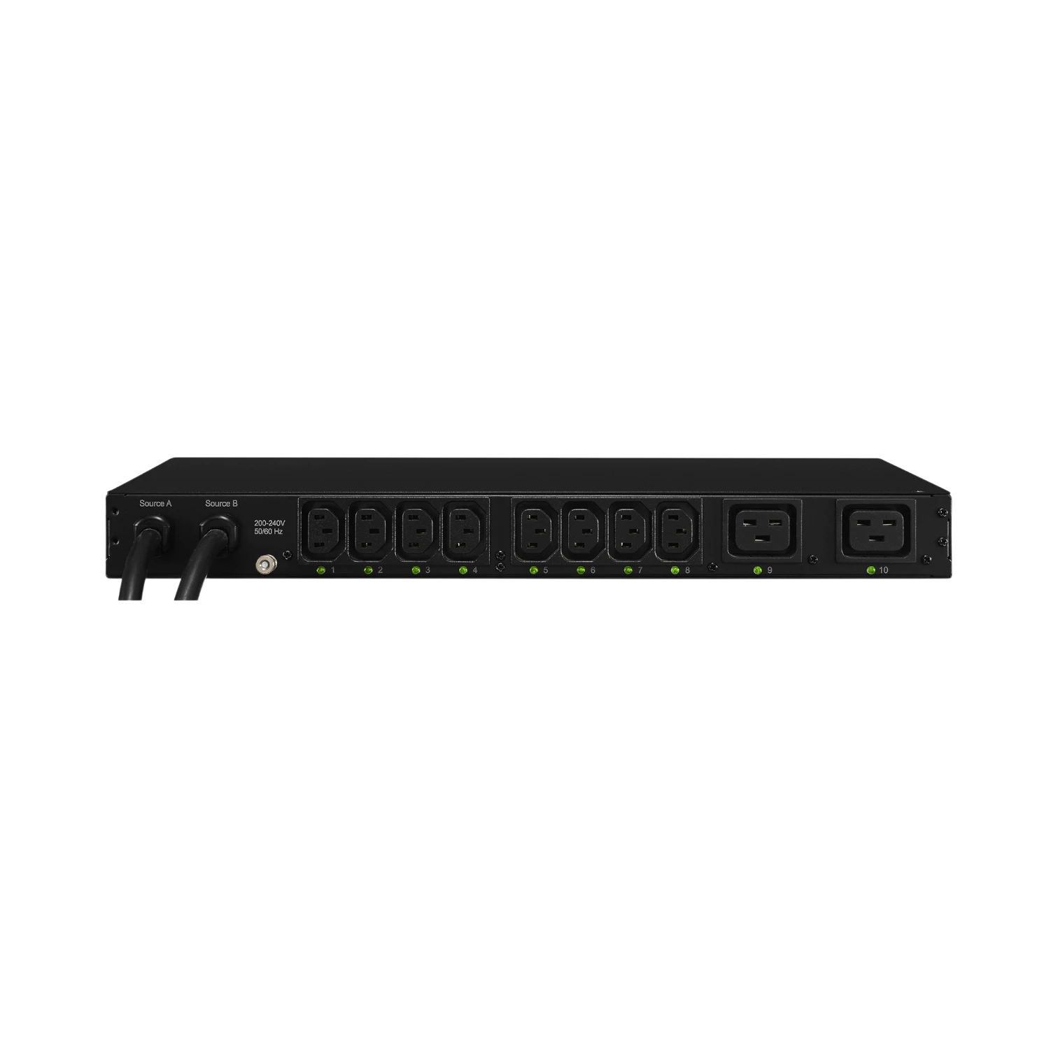 Switched ATS PDU(20A)16A 200-240V/50-60HZ/2x NEMA L6-20P Plugs/10 IEC-320R(8-C13/2-C19)1 RU/10'Cord