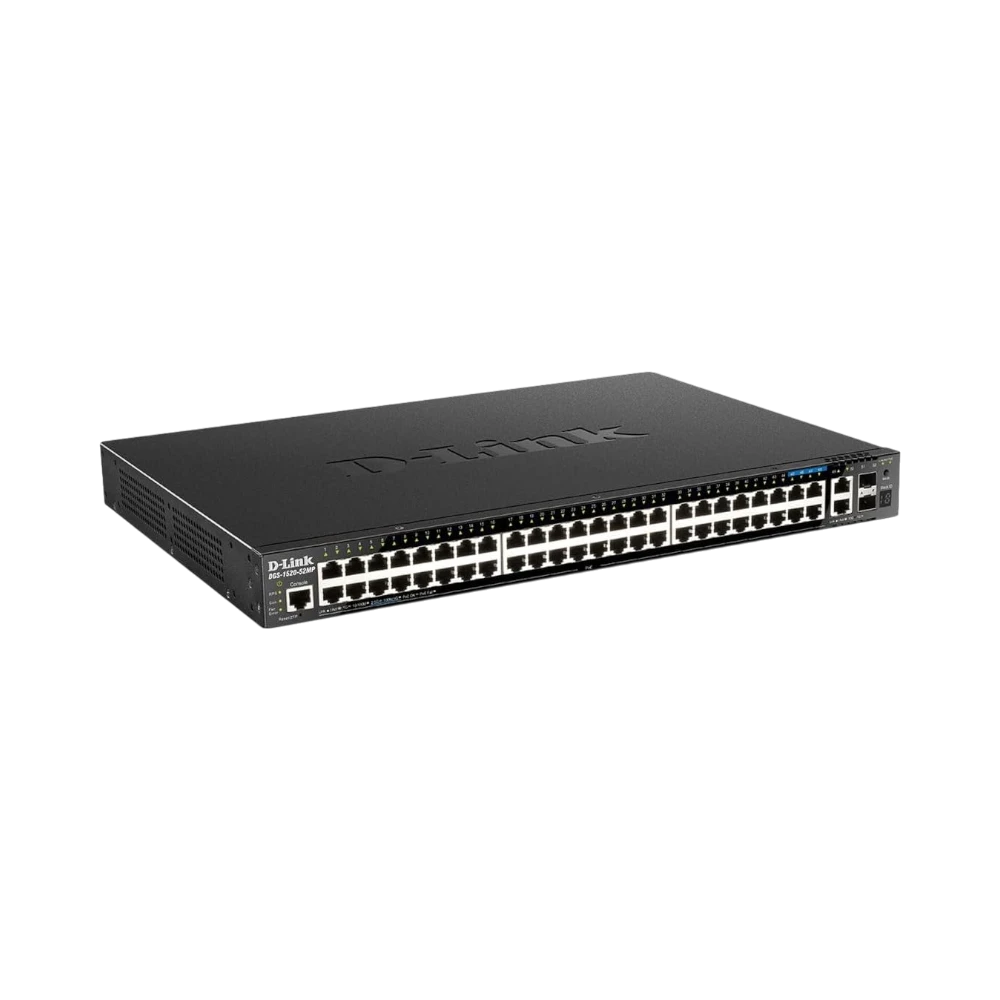 The D-Link DGS-1520-52MP is a Layer 3 stackable smart managed switch designed to provide fast and reliable network connectivity for expanding business environments. It features 44 Gigabit Ethernet PoE+ ports and 4 multi-gig 2.5G PoE ports, delivering both data and power to devices like WiFi 6 access points and other high-demand equipment. With high-speed uplinks through two 10GBase-T and two 10G SFP+ ports, this switch ensures efficient data transfer even in busy network setups.