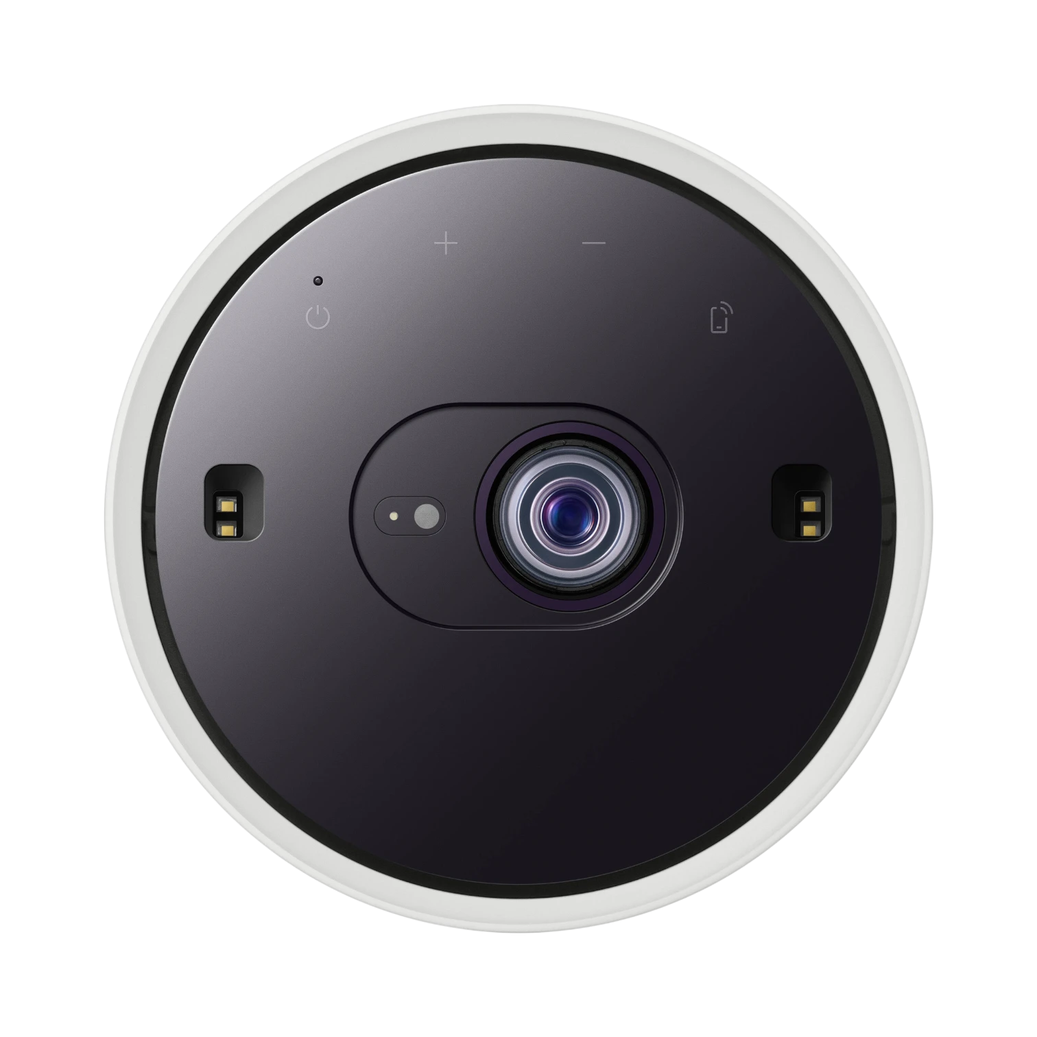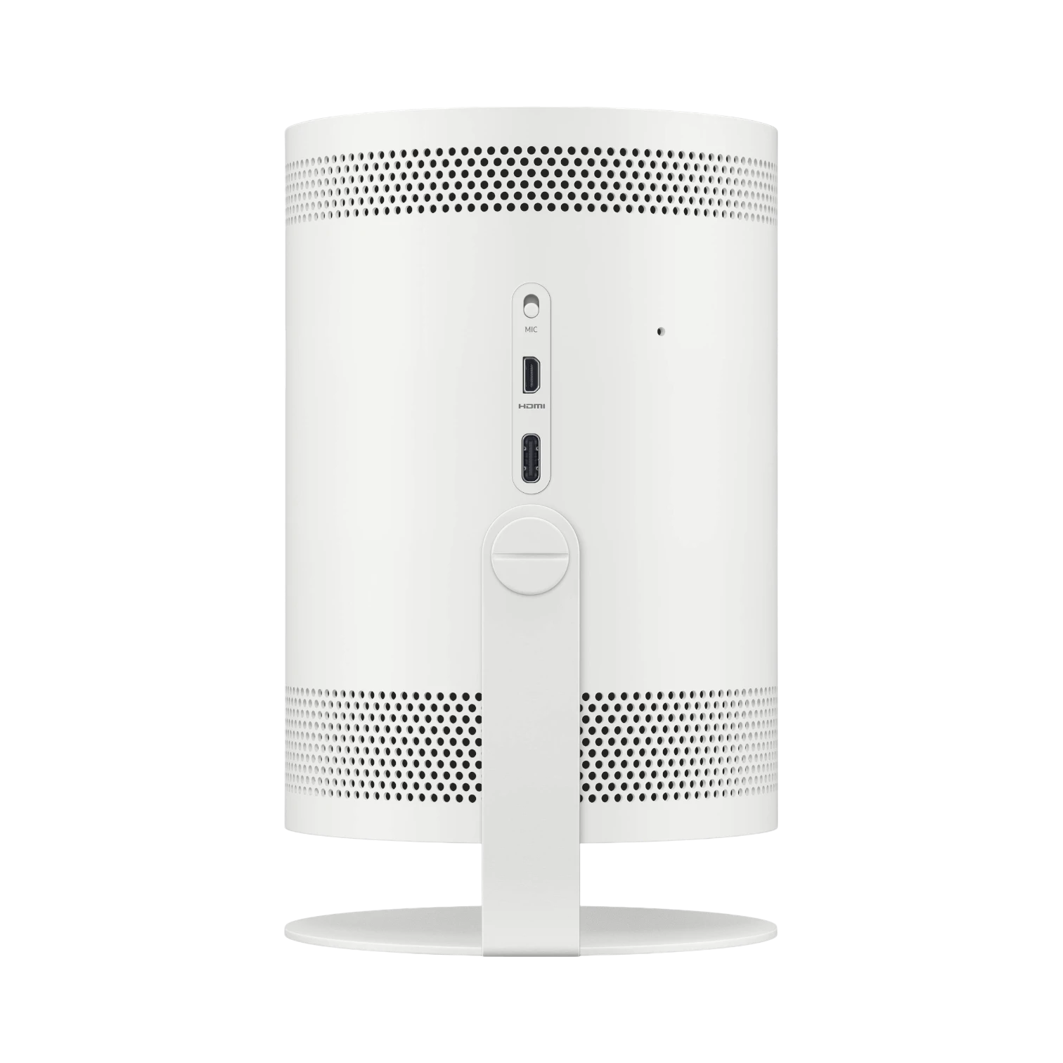 The Samsung SP-LFF3CLAXXZA is a portable smart projector designed to transform nearly any wall or ceiling into a 100-inch Full HD screen. With 230 lumens of brightness and HDR support, it delivers clear and richly colored images that perform well in dim environments such as living rooms, bedrooms, or outdoor settings. Its simple setup features like auto-focus, auto-leveling, and keystone correction ensure the picture aligns perfectly within seconds, while the adjustable cradle stand allows flexible positioning from tables to ceilings.