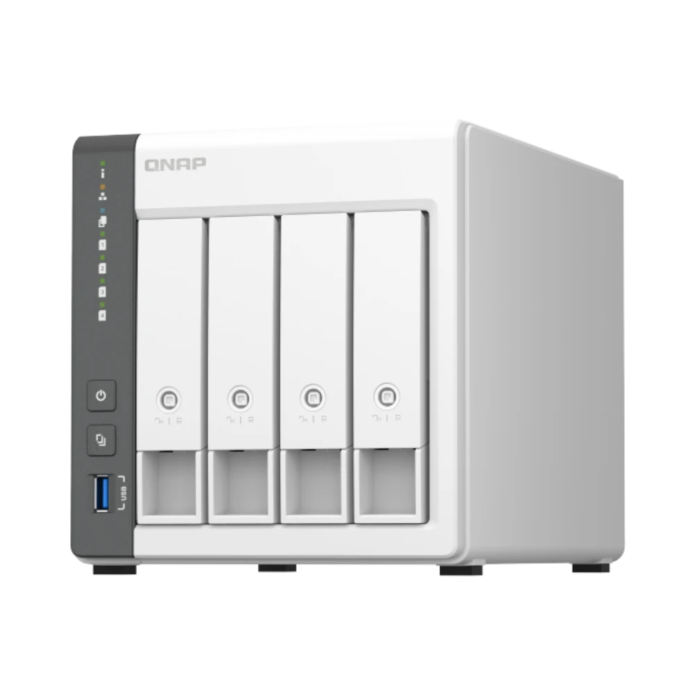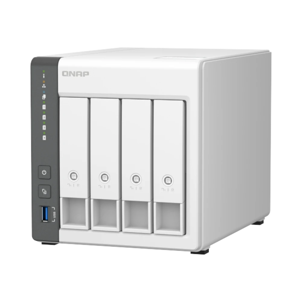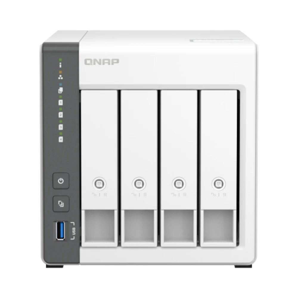 The QNAP TS-433-4G-US is a 4-bay NAS enclosure designed to provide organized and high-speed storage solutions for homes and small offices. Powered by a quad-core 2.0 GHz ARM Cortex-A55 processor and equipped with 4 GB of DDR4 memory, it handles file transfers, backups, and media streaming efficiently. With dual network ports including a 2.5 GbE connection for demanding tasks and a 1 GbE port for everyday use, this NAS supports versatile networking needs. It accommodates up to four SATA III drives, allowing flexible storage configurations from simple media libraries to robust RAID arrays for critical data protection.
