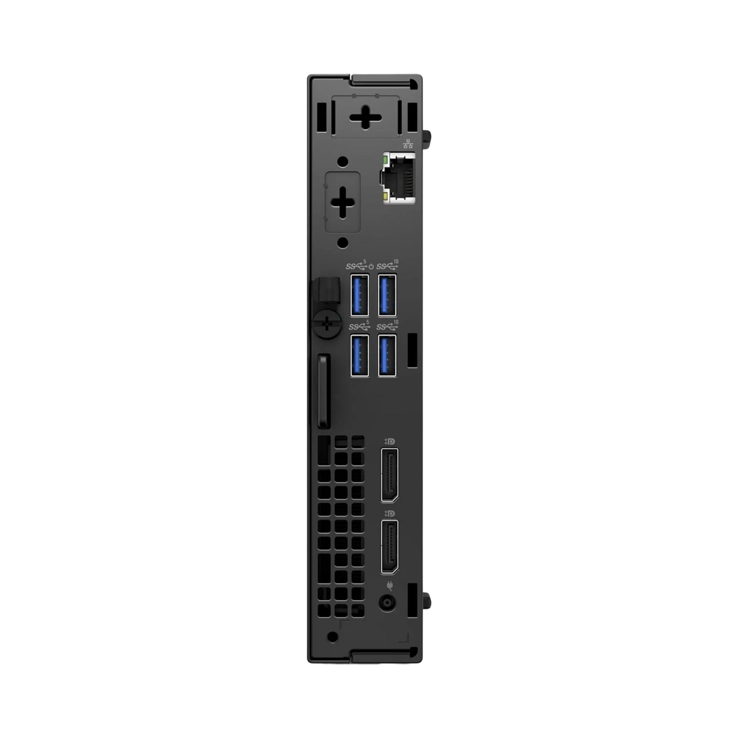 This micro desktop offers versatile connectivity options to fit various office and home environments. The inclusion of Wi-Fi 6E and Bluetooth 5.2 ensures fast wireless connections for peripherals and internet access, while the Gigabit Ethernet port provides a reliable wired network option for low-latency tasks. Dual DisplayPort outputs allow users to connect two monitors simultaneously, enhancing multitasking and workflow efficiency. Multiple USB ports support a wide range of accessories, from keyboards and mice to external drives and scanners.