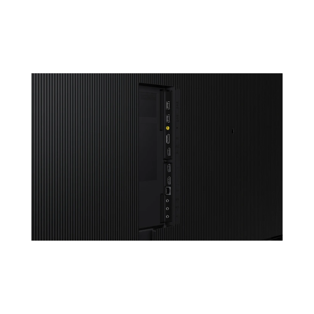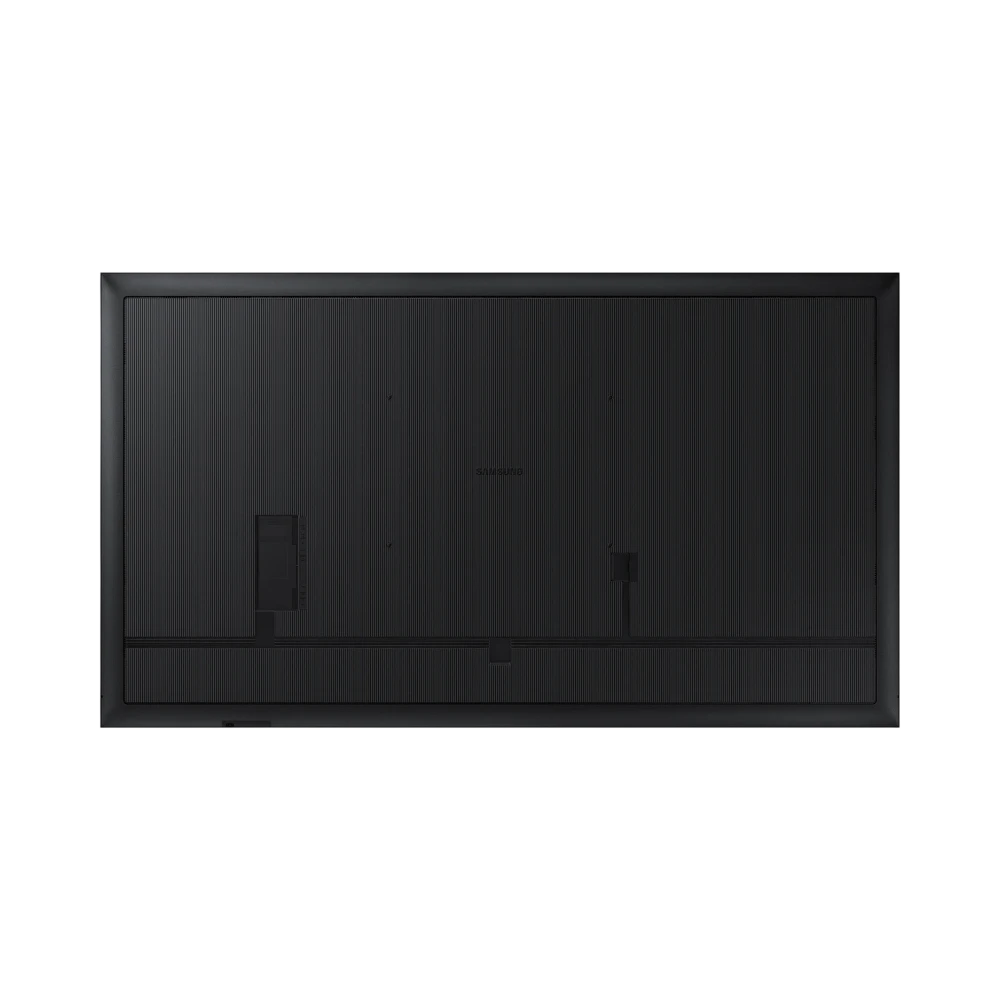 The slim 1.9-inch depth and centered VESA mounting pattern make the QM98C easy to install in tight spaces or flush against walls, which is ideal for corridors, control rooms, and executive boardrooms. The ability to rotate the display between landscape and portrait orientations adds flexibility for different signage needs. Smart Calibration via a Samsung mobile app helps installers achieve accurate color reproduction quickly, reducing setup time and ensuring consistent image quality across multiple units.