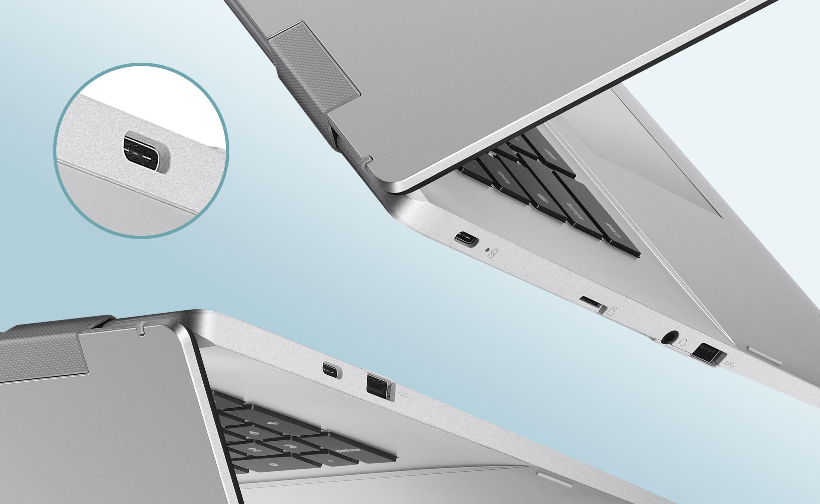 - Two USB-C ports that support charging, data transfer, and external display connections