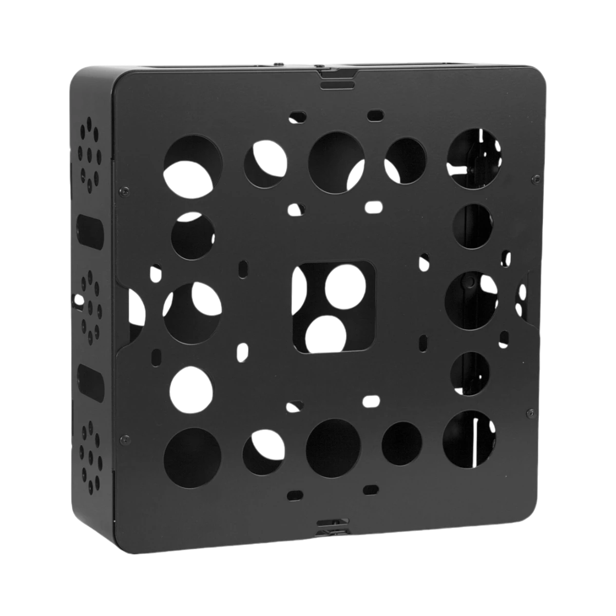 - Cable access holes align with common input and output ports, simplifying connections for power, network, and HDMI cables