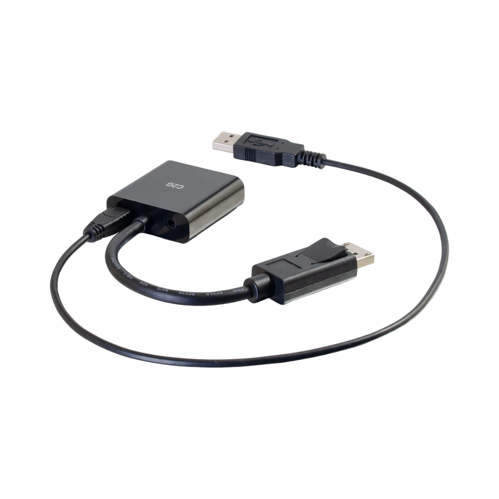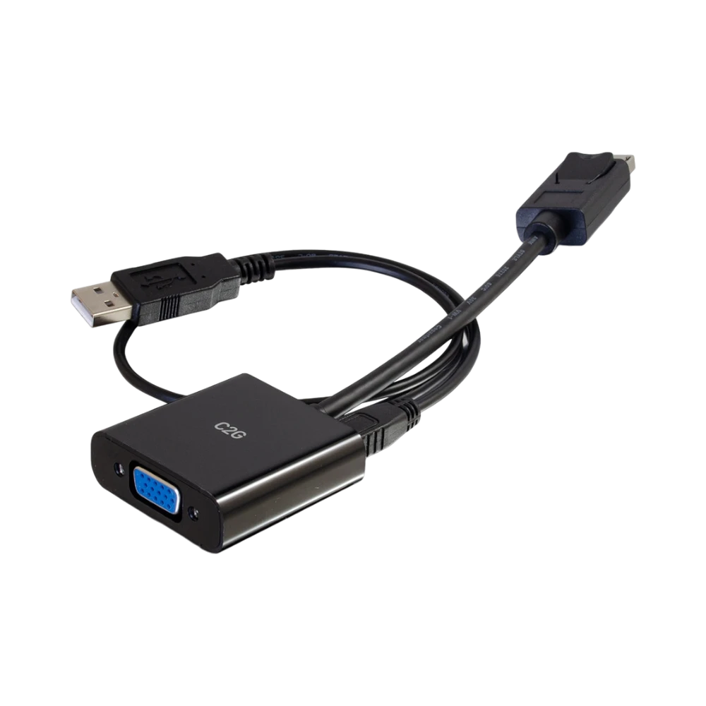 The C2G 54682 is an 8-inch active adapter designed to convert DisplayPort output from a computer or laptop into VGA video and 3.5 mm stereo audio signals. It enables users to connect modern devices to legacy displays such as projectors, monitors, or televisions that only support VGA and analog audio inputs. Supporting resolutions up to 1920 × 1200, this adapter ensures clear and detailed visuals for presentations, spreadsheets, and video streaming while maintaining audio and video synchronization.