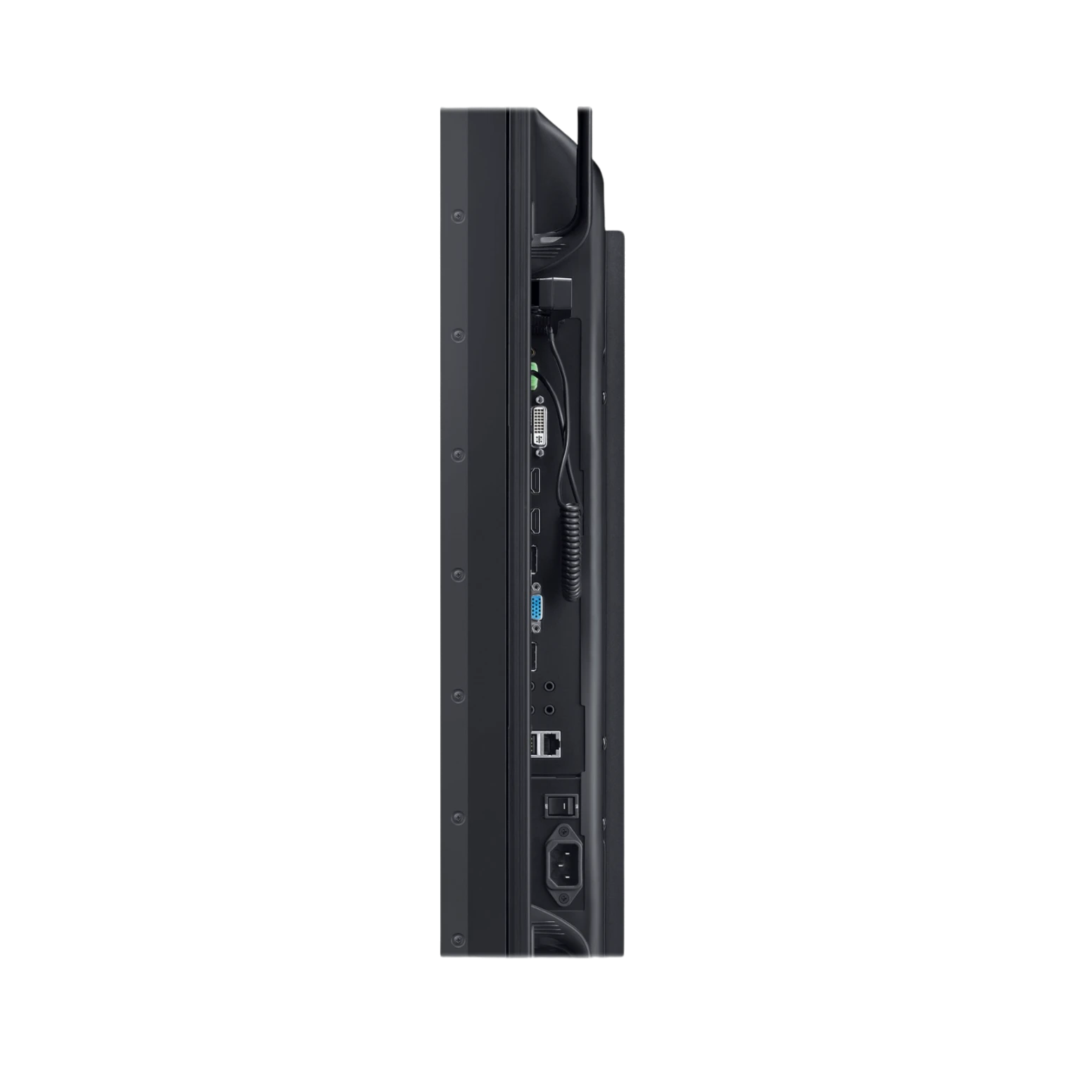This display offers flexible connectivity options with both DisplayPort and HDMI inputs, enabling easy integration into existing AV setups. The ability to link multiple units into a large video wall makes it suitable for scalable installations that can grow over time without requiring new hardware. It supports a single UHD source that the displays automatically split and scale, simplifying content management across multiple screens.