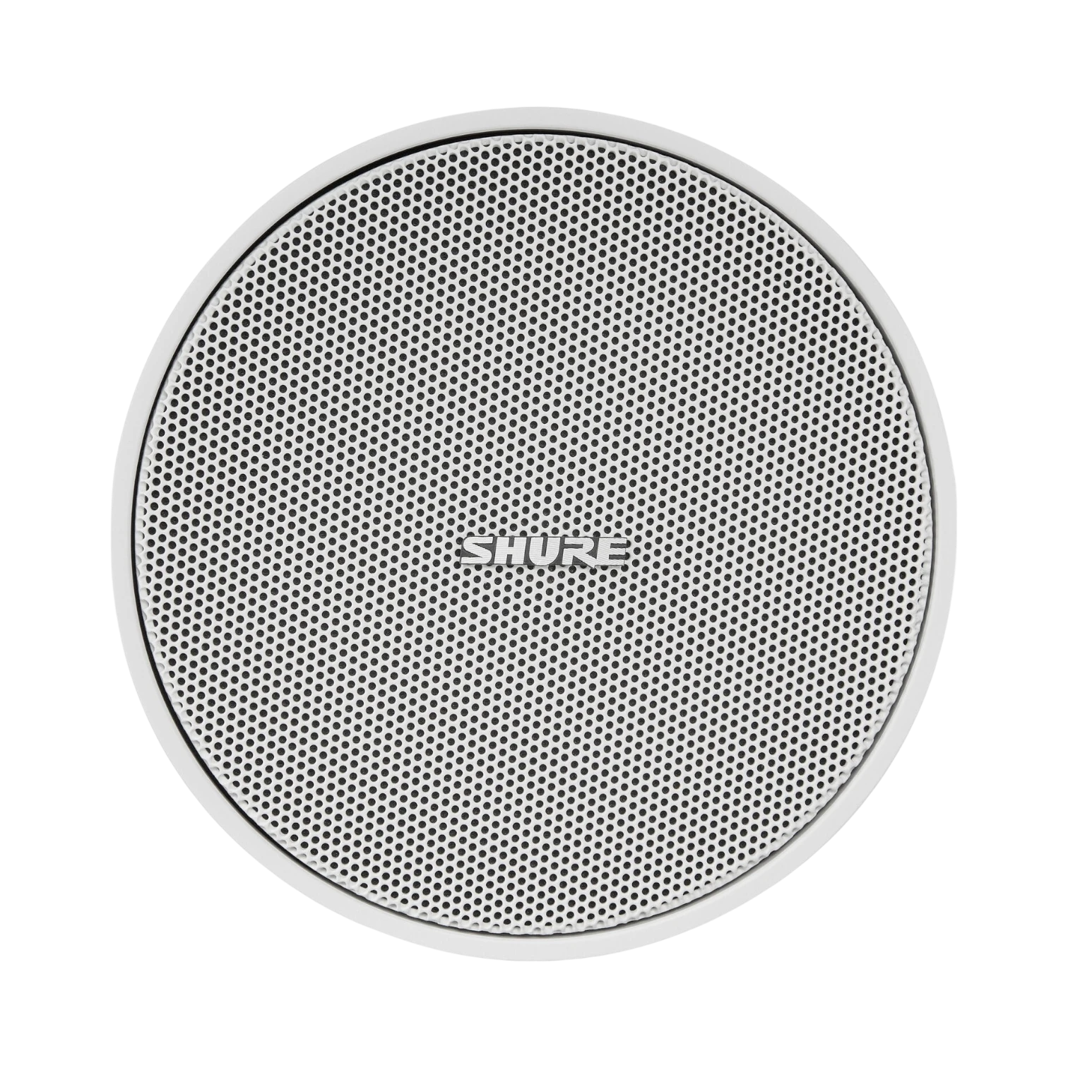 The Shure MXP-1W is a ceiling-mounted mini pendant loudspeaker designed specifically for meeting and conference rooms where clear speech is critical. It delivers even sound coverage with an 88-degree conical pattern, ensuring that every participant hears conversations with consistent clarity. The speaker handles up to 20 watts peak power and offers a frequency response from 120 Hz to 20 kHz, making it well suited for reproducing natural and uncolored speech without excess bass.