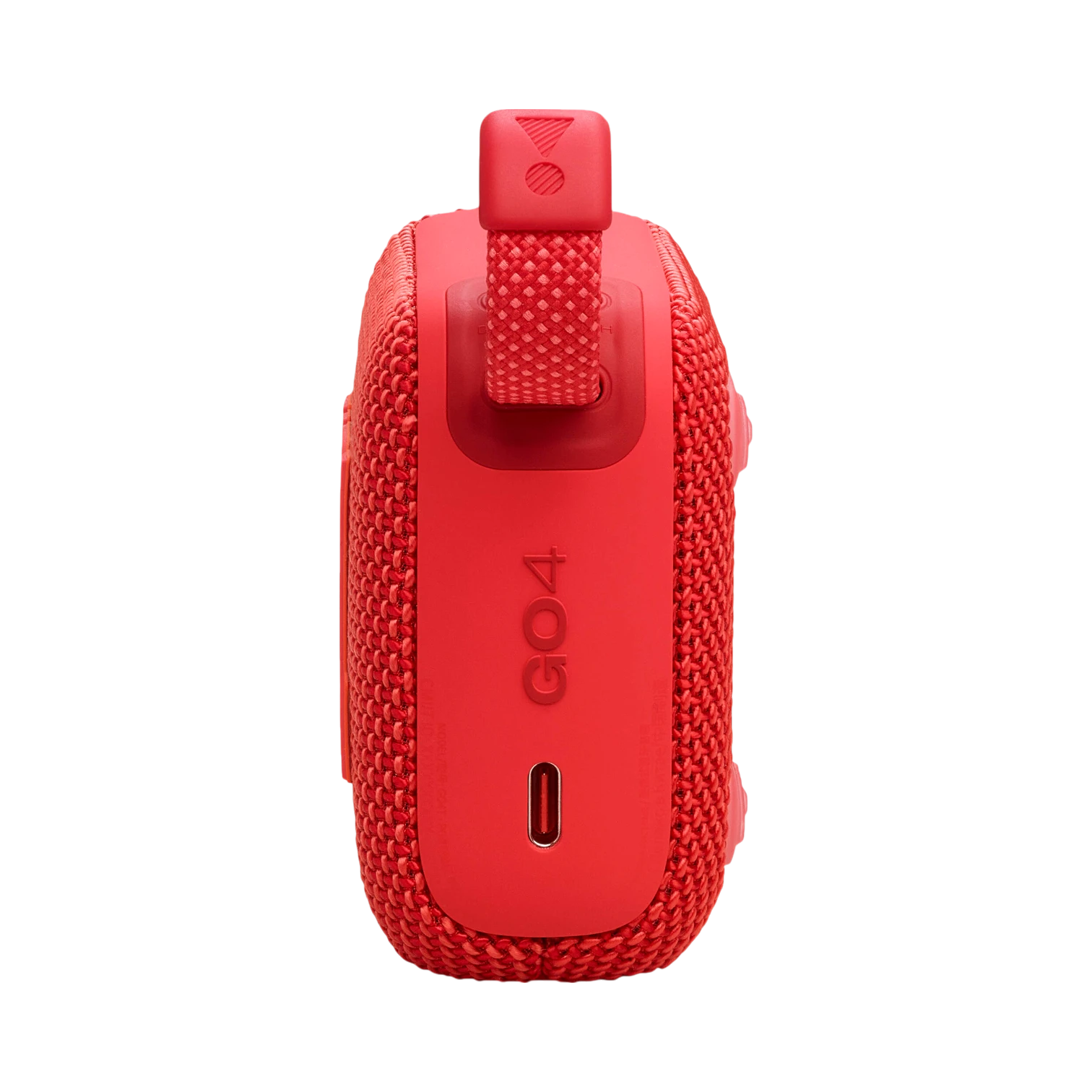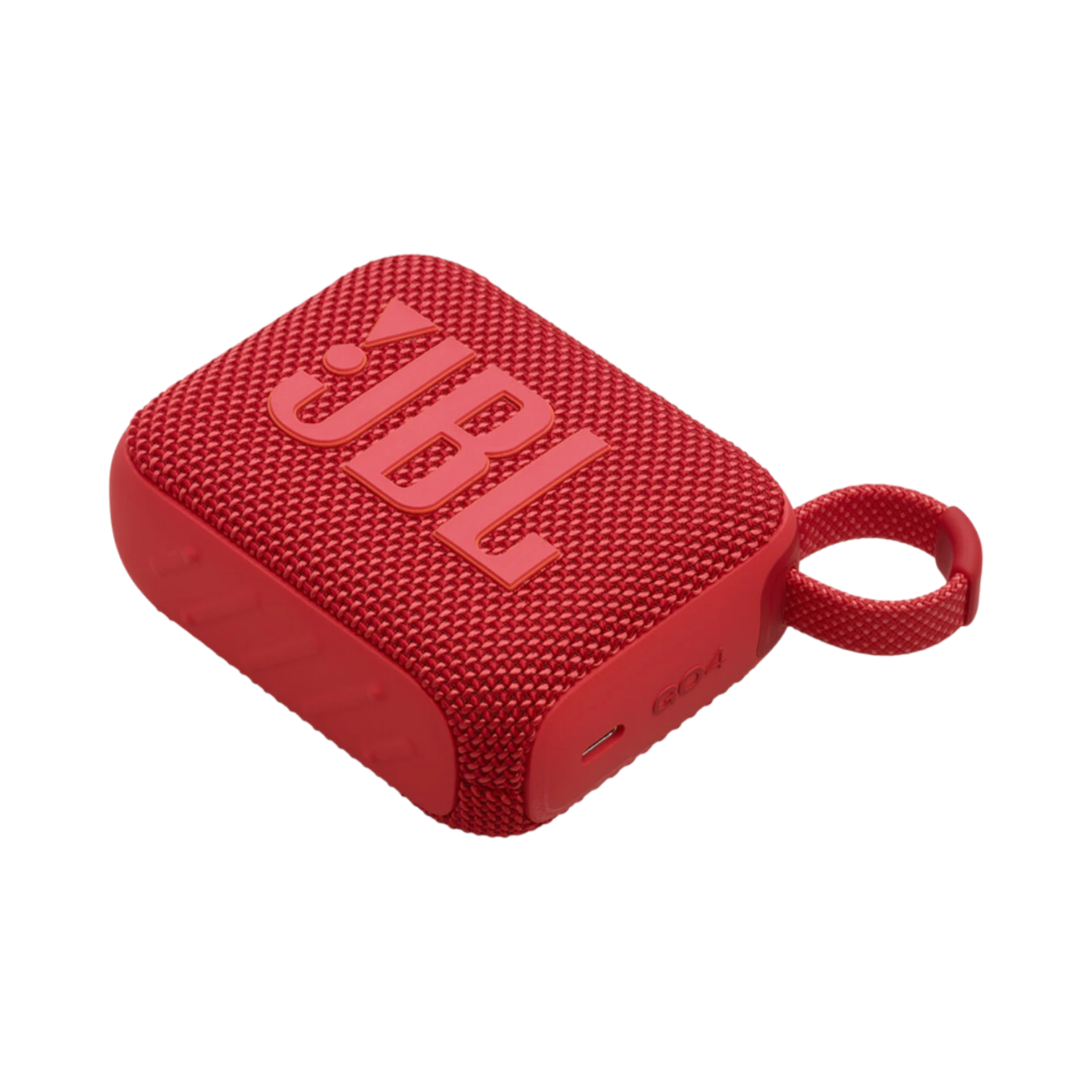 The JBL JBLGO4REDAM is a portable Bluetooth speaker designed to deliver clear and punchy sound in a compact form. With 4.2 watts of audio power, it fills small to medium spaces like rooms, campsites, or poolside areas with balanced sound that highlights both bass and vocals. Its IP67 rating ensures protection against water and dust, making it a reliable choice for outdoor adventures and everyday use. The speaker offers up to seven hours of battery life, extendable to about nine hours with Playtime Boost, and recharges via USB-C in approximately three hours.