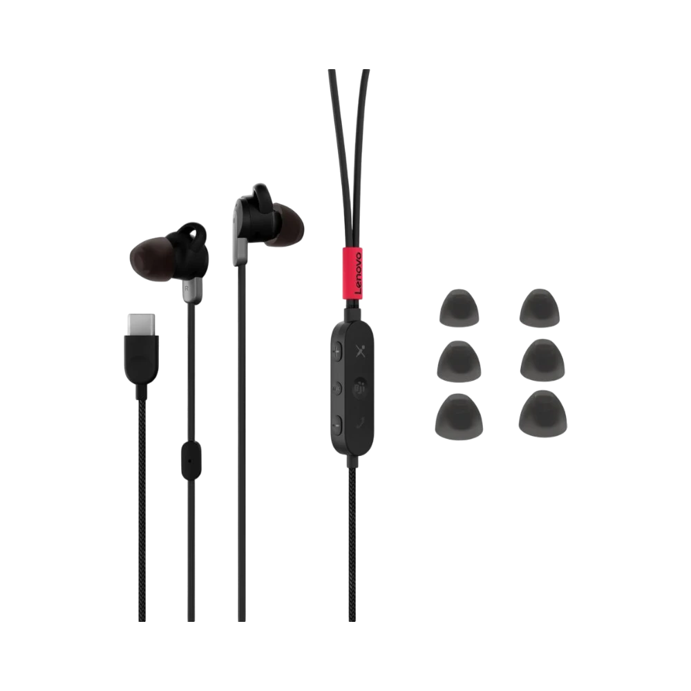 The Lenovo 4XD1C99220 is a USB-C in-ear headphone designed to deliver active noise cancellation and clear voice communication for professionals who spend long hours in virtual meetings or work in noisy environments. Featuring 10 mm drivers that cover a frequency range from 50 Hz to 10 kHz, these earphones provide balanced audio quality for calls, focus work, and casual listening during commutes. The wired design ensures consistent performance without the need for charging, making it a dependable choice for daily use.