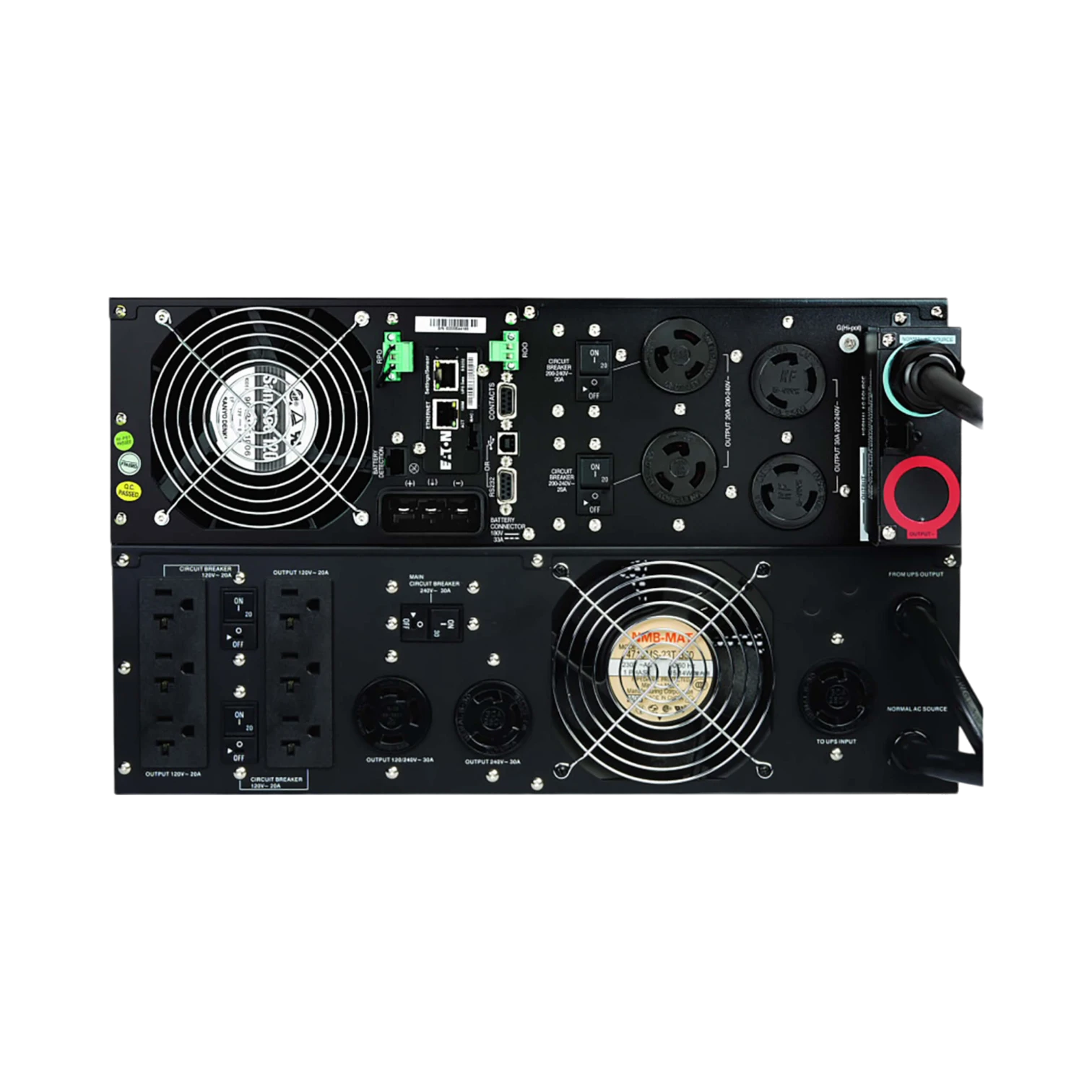 This UPS is designed to integrate seamlessly with a range of IT equipment commonly found in small to medium data centers and network closets. The mix of standard 5-20R outlets and higher-capacity L6-30R and L14-30R receptacles supports diverse power needs, from typical rack servers to blade chassis and edge devices. The NETWORK-M2 card provides secure remote access for monitoring and management, compatible with standard SNMP tools and web browsers, making it easier to maintain uptime without constant physical presence.