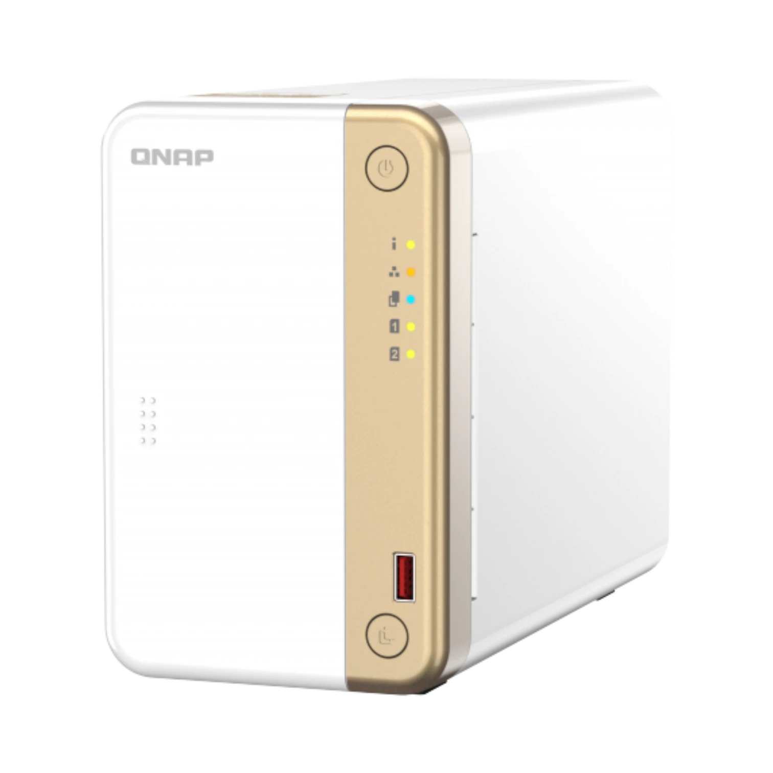 The QNAP TS-262-4G-US is a two-bay NAS enclosure designed to give home users full control over their digital content without relying on public cloud services. Powered by a dual-core Intel Celeron N4505 processor and 4 GB of memory, it runs QTS 5.0.1, an operating system that combines desktop familiarity with powerful backup, synchronization, and media management tools. With two 2.5 GbE network ports and an HDMI 2.0 output, it supports fast file transfers and direct 4K video playback on TVs or monitors.