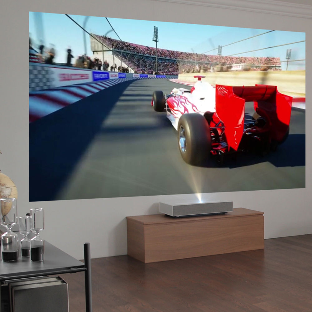 - Ultra-short throw design projects a large 120-inch image from just 7.2 inches away, saving space and simplifying setup