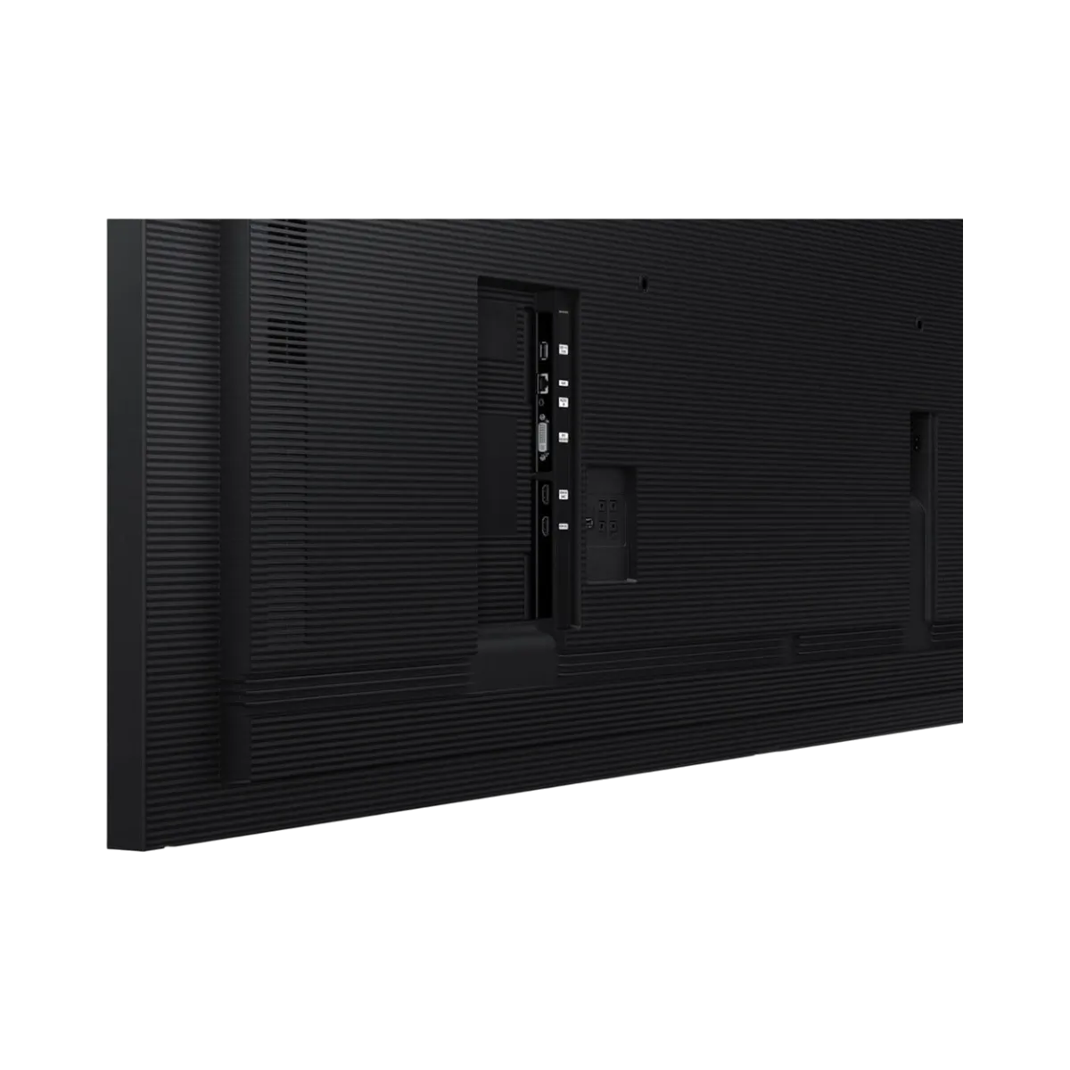 The display offers a range of connectivity options to accommodate various content sources and network setups. Two HDMI inputs and a DVI-D port allow connection to modern and legacy video devices, while USB ports support media playback and firmware updates. The Ethernet jack enables network control and remote content management through Samsung’s MagicINFO platform. Its compatibility with Cisco Webex Room Kit makes it a versatile choice for corporate meeting rooms requiring video conferencing capabilities.