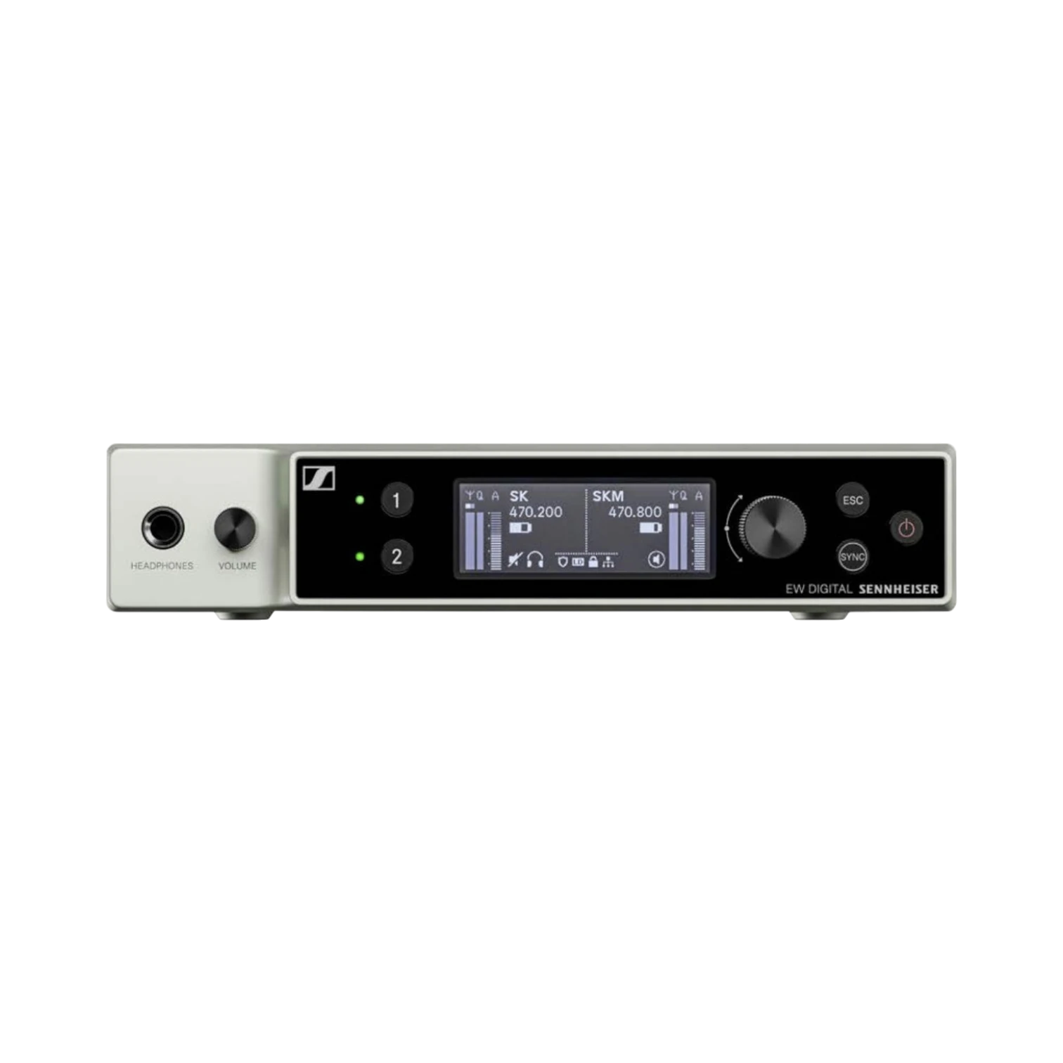 The Sennheiser 509357 is a digital wireless receiver designed to manage two audio channels within a compact half-rack unit. It integrates seamlessly with EW-DX transmitters and delivers network audio via built-in Dante connectivity, allowing audio signals to be routed over standard Ethernet without the need for additional converters. With a low latency of 1.9 ms and an input dynamic range of 134 dB, it ensures clear and synchronized sound for live performances, corporate events, and broadcast environments.