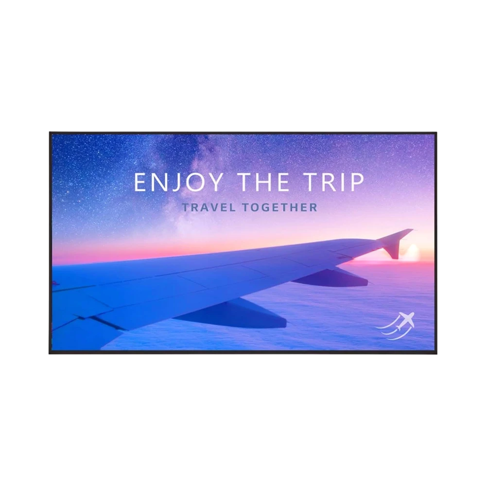 This monitor supports a wide range of modern source devices through its multiple HDMI ports and DisplayPort input, allowing easy connection to computers, media players, and other digital signage hardware. USB playback lets you display content directly from flash drives without additional equipment. Wireless connectivity is handled via built-in Wi-Fi and Bluetooth, enabling remote content updates and peripheral pairing without cables.