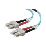 Equipped with polished SC male connectors on both ends, this cable installs easily into switches, routers, patch panels, or media converters without the need for adapters. Its distinctive aqua jacket helps identify the cable quickly in crowded racks or cabinets, simplifying installation and maintenance.