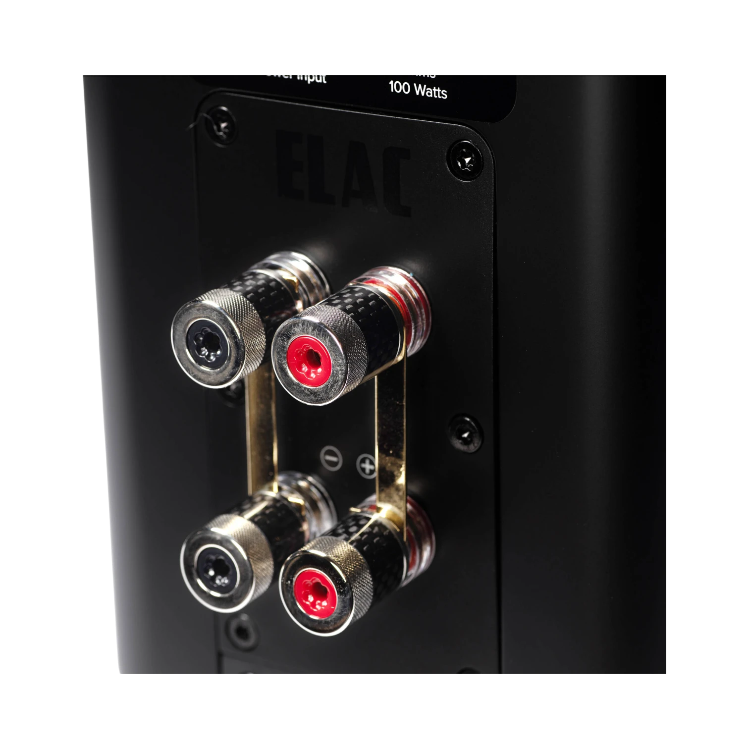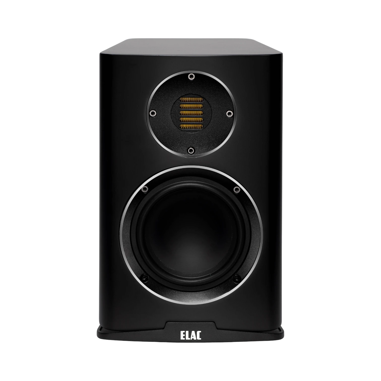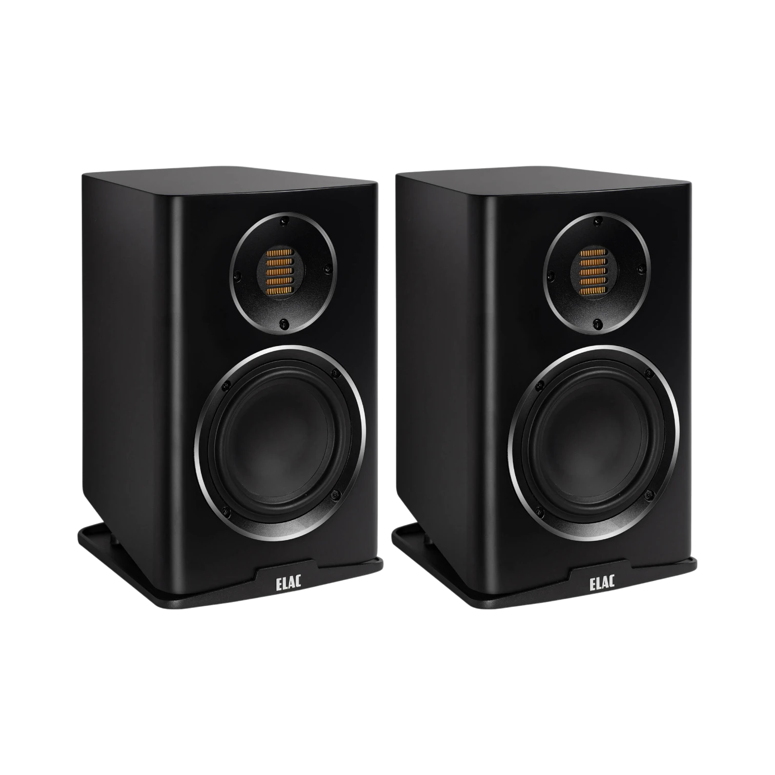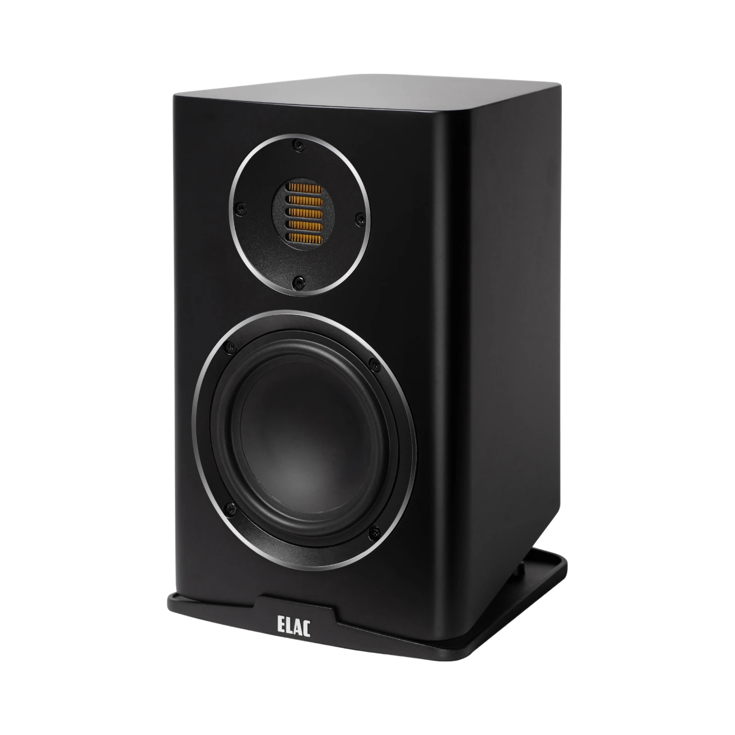 The ELAC BS243.4-SB is a pair of bookshelf speakers designed to deliver clear and detailed sound with a focus on precision and dynamic range. Featuring a 5.25-inch aluminum woofer and JET folded ribbon tweeters, these speakers cover a wide frequency range from 46 Hz to 30 kHz and handle up to 150 watts per channel. Their satin black finish and downward-firing bass reflex port make them a flexible and stylish choice for various home audio setups.