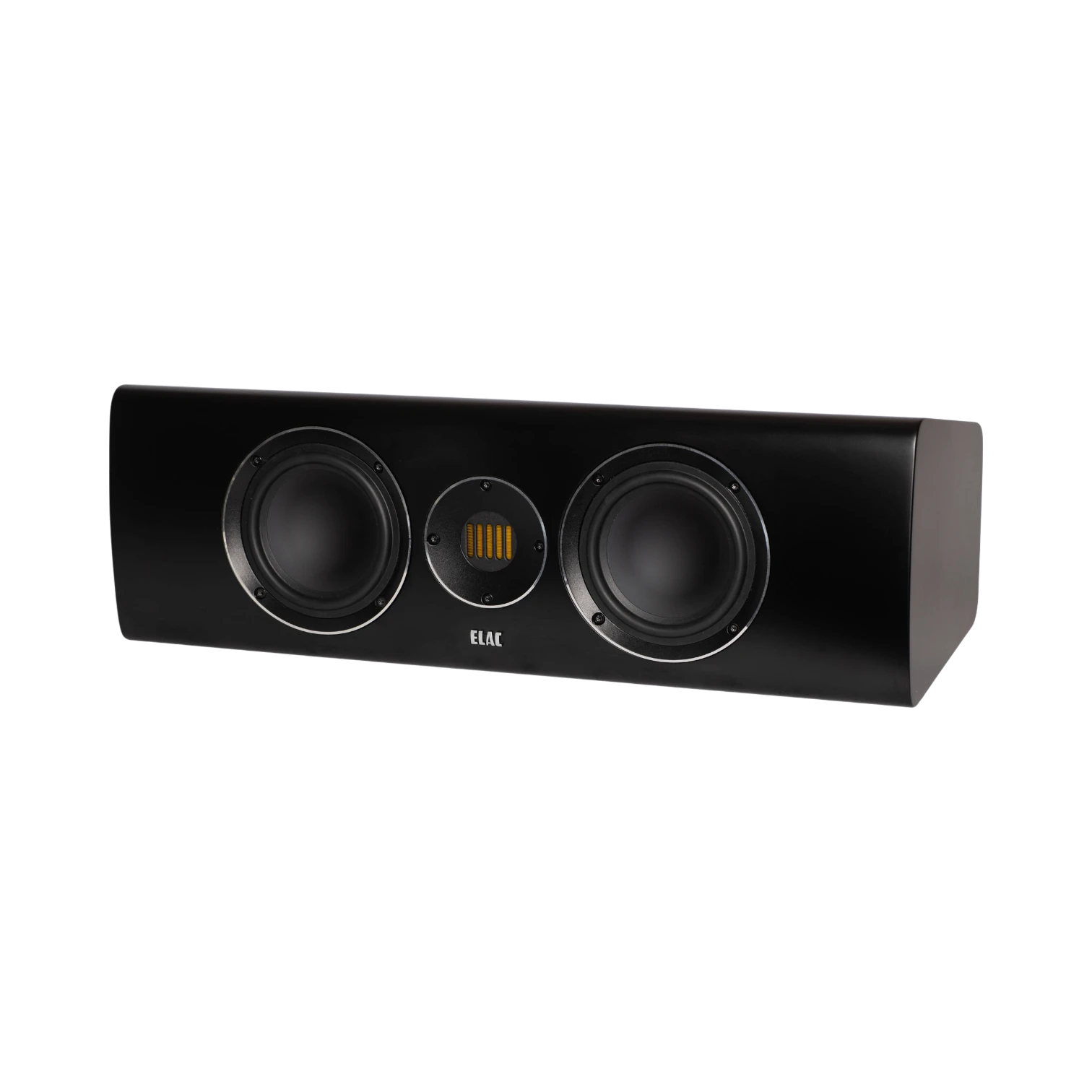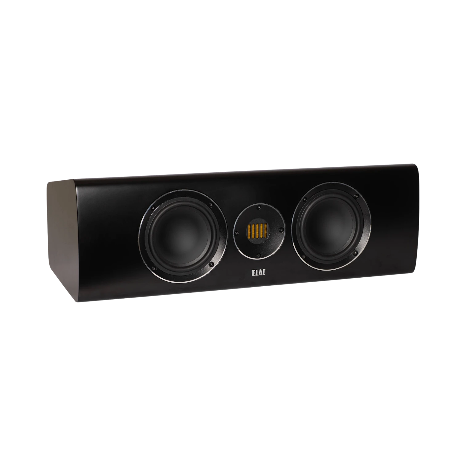 The ELAC CC241.4-SB is a 2.5-way center channel speaker designed to deliver clear and natural dialogue in home theater systems. Featuring dual 5.25-inch aluminum cone woofers and a JET folded ribbon tweeter, it offers a frequency response from 50 Hz to 30 kHz, ensuring crisp highs and balanced midrange. Its satin black finish and acoustically optimized cabinet make it a stylish and effective addition to any media room.