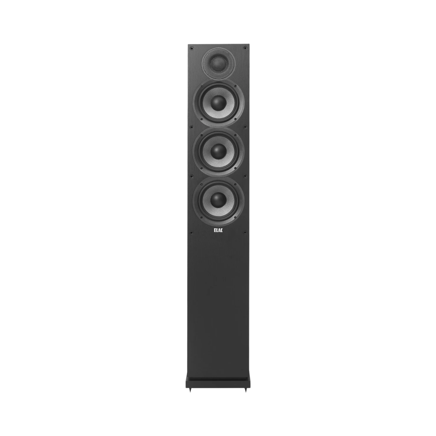 The ELAC DF52-BK is a three-way floorstanding speaker designed to deliver a rich and immersive audio experience for music enthusiasts and home cinema fans alike. It features a 1 inch cloth dome tweeter for crisp high frequencies, a 5.25 inch aramid fiber midrange driver that reproduces vocals and instruments with natural tone, and dual 5.25 inch woofers that extend bass response down to 42 Hz. This combination covers a wide frequency range up to 35 kHz, ensuring detailed sound reproduction across all audio layers.