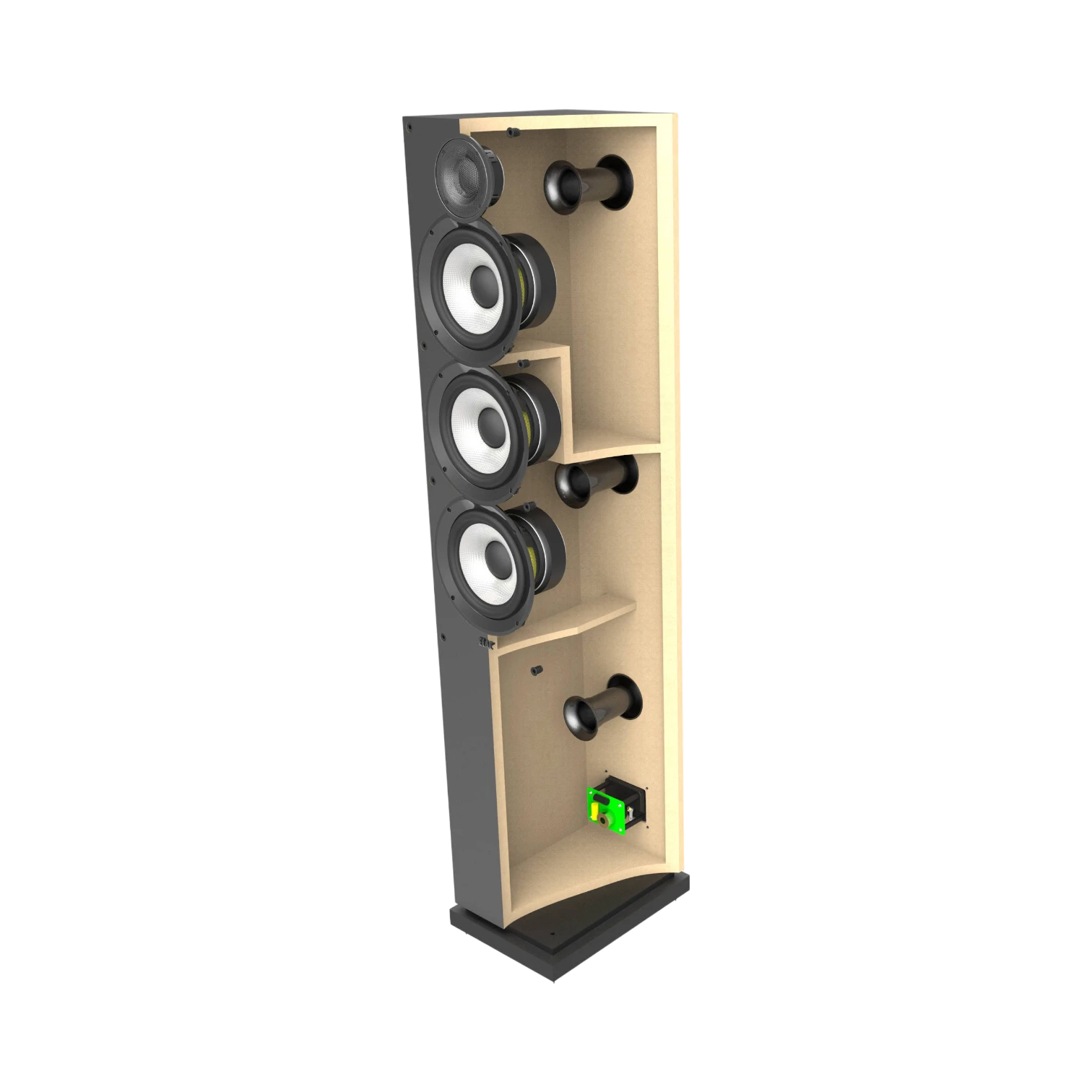 - Three aramid-fiber woofers deliver extended bass and dynamic midrange without distortion.