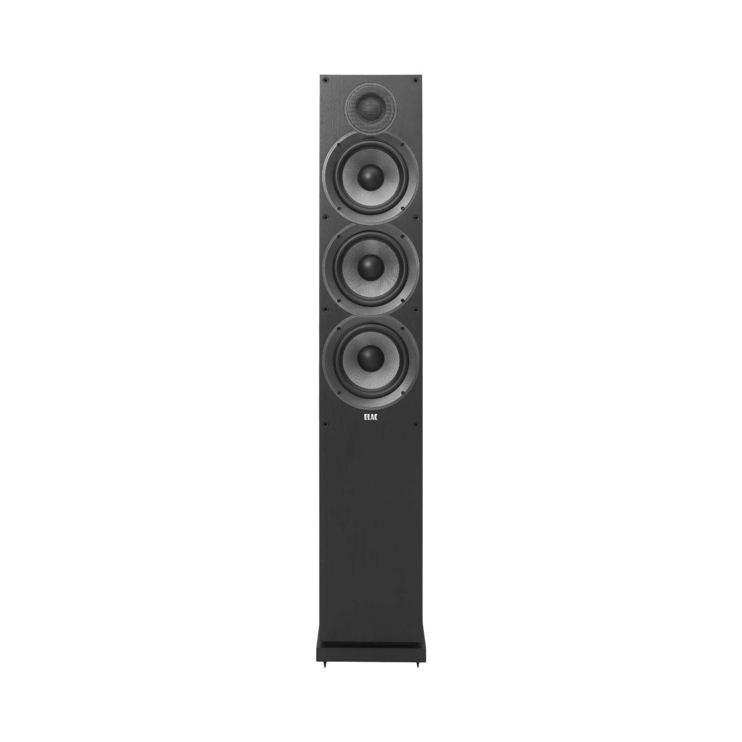 The ELAC DF62-BK is a floorstanding three-way speaker designed to deliver full-scale sound in living rooms, media dens, or dedicated listening spaces. It features a 1-inch cloth dome tweeter and three 6.5-inch aramid-fiber woofers, providing a frequency response that spans from 35 Hz to 35,000 Hz. This speaker balances clear highs, articulate vocals, and deep bass, making it suitable for both music and movie soundtracks.