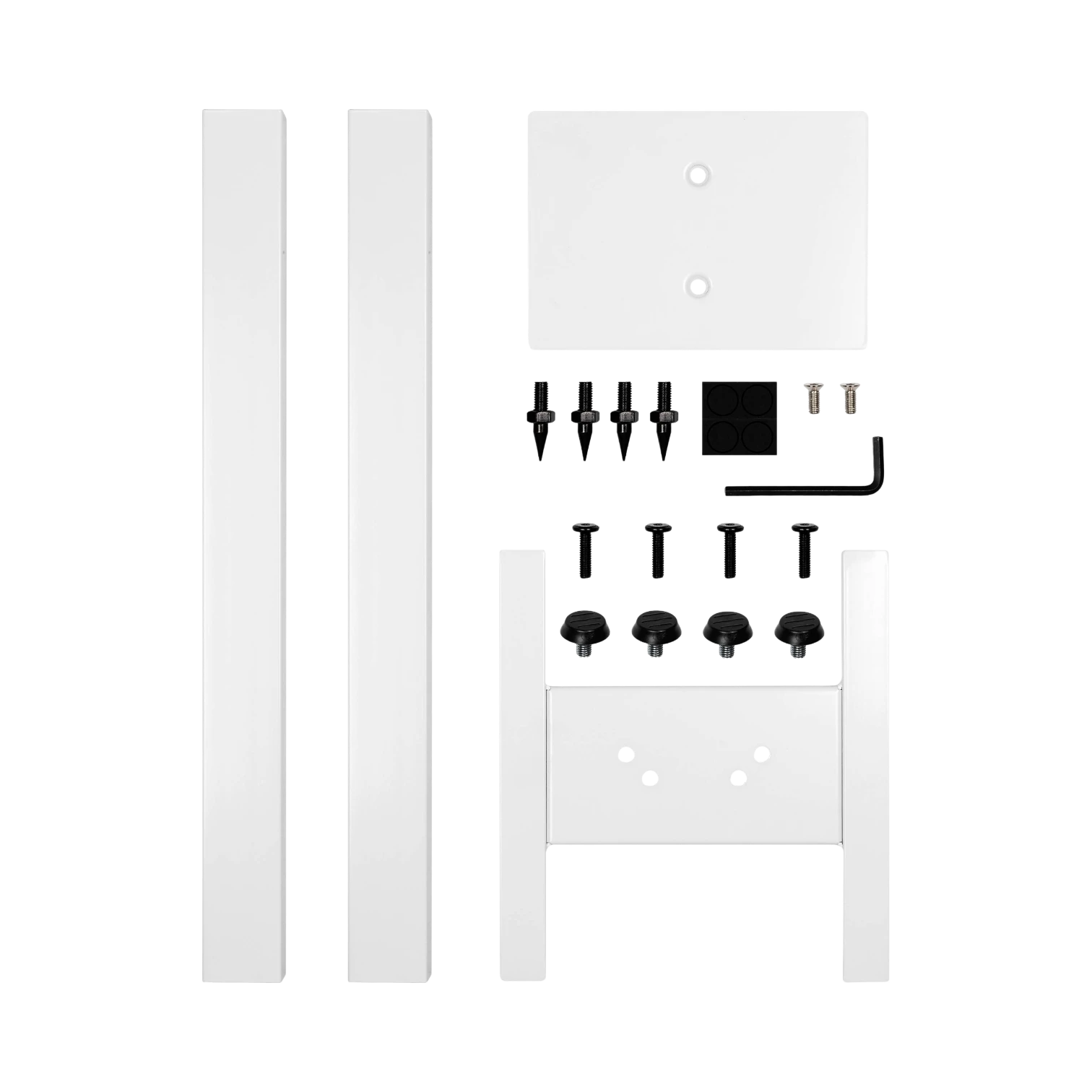 - Includes both floor spikes and rubber feet to adapt to carpet, hardwood, or tile flooring