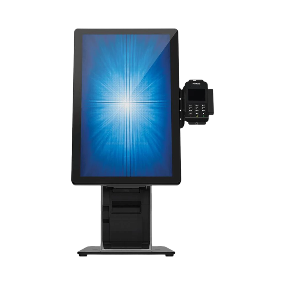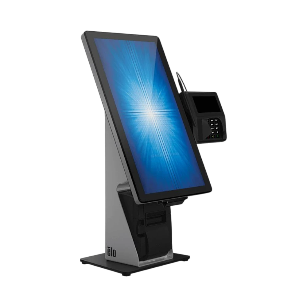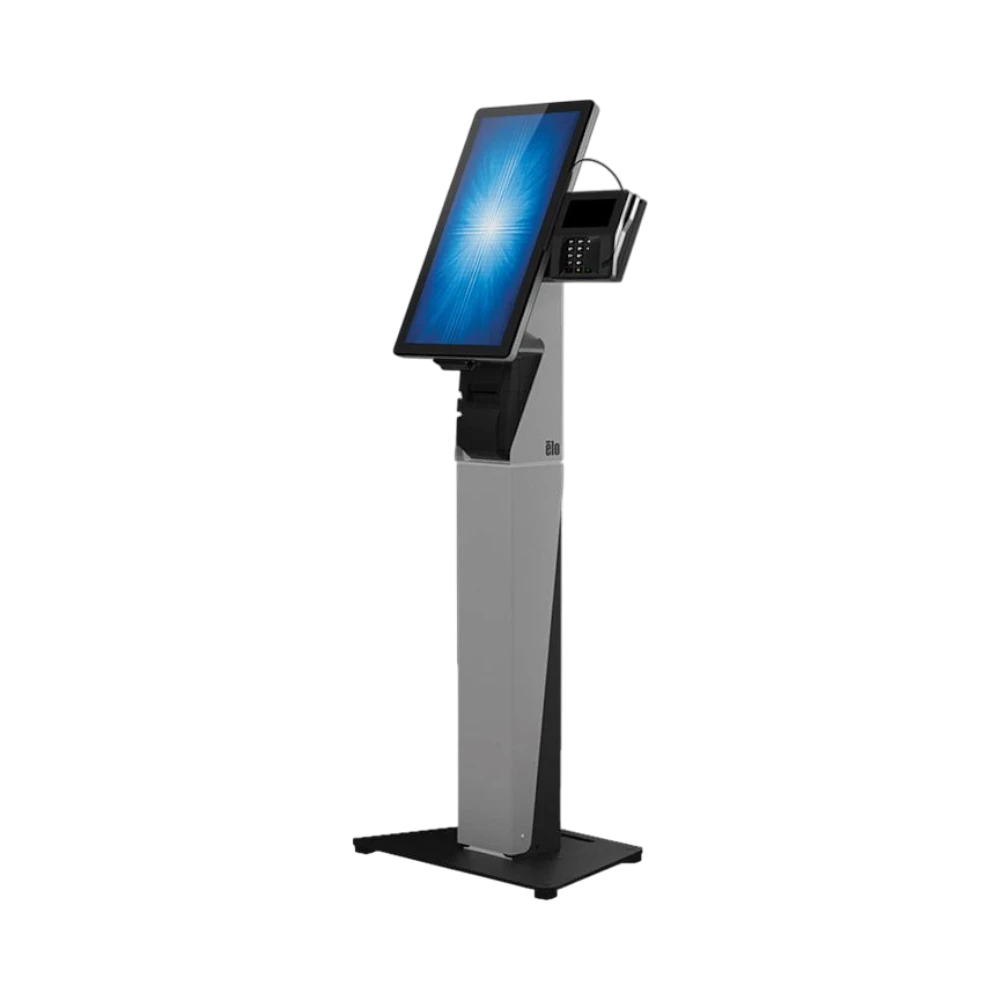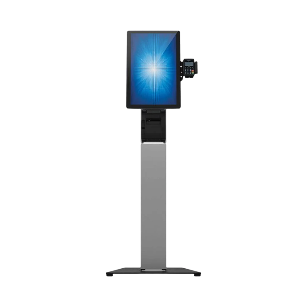 This stand is specifically designed for Elo I-Series 4.0 touchscreens, ensuring seamless compatibility and secure mounting for both 15.6-inch and 21.5-inch models. It also accommodates standard receipt printers and Elo expansion modules, making it a versatile solution for various self-service applications.
