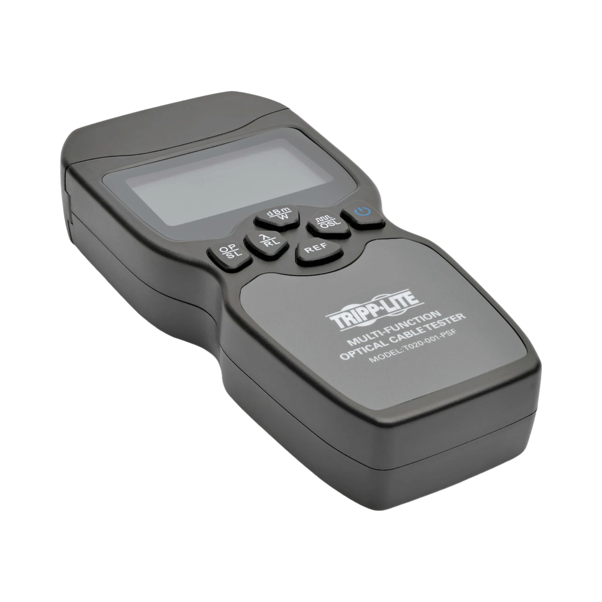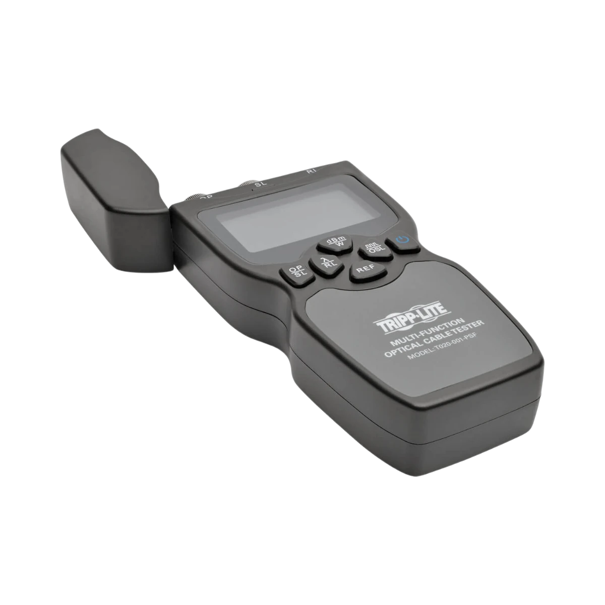 The Tripp Lite T020-001-PSF is a multi-function optical fiber cable tester designed to verify the health and performance of fiber optic links up to 20 km in length. It combines a power meter, light source, and visual fault locator into a single handheld device, making it an essential tool for technicians working on installation, troubleshooting, and routine maintenance of fiber networks. The power meter supports six wavelengths, including 850, 1300, 1310, 1490, 1550, and 1625 nm, suitable for both single-mode and multimode fibers.